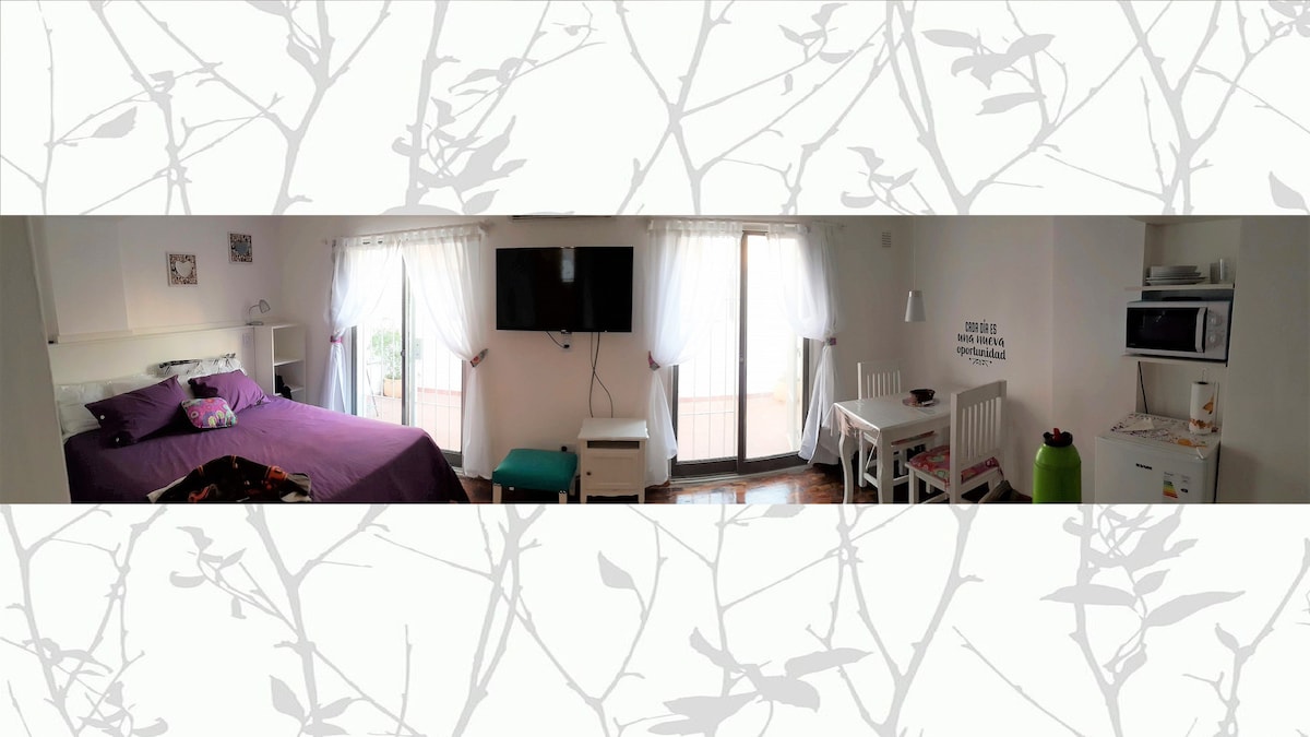 С террасой для эксклюзивного использования и непревзойденным видом в парке Сьерра в городе Альта-Грасия. Несколько минут пешком до гастрономического района и центра города. Стильно оформленная и полностью оборудованная, 1 двуспальная кровать или 2 односпальные кровати. К услугам гостей центральное отопление и разделенный кондиционер. Его предпочтительное расположение позволяет остановиться в жилом районе Пеллегрини, откуда легко добраться до исторических мест, ресторанов, кафе и парков одного из самых туристических городов Кордовы.