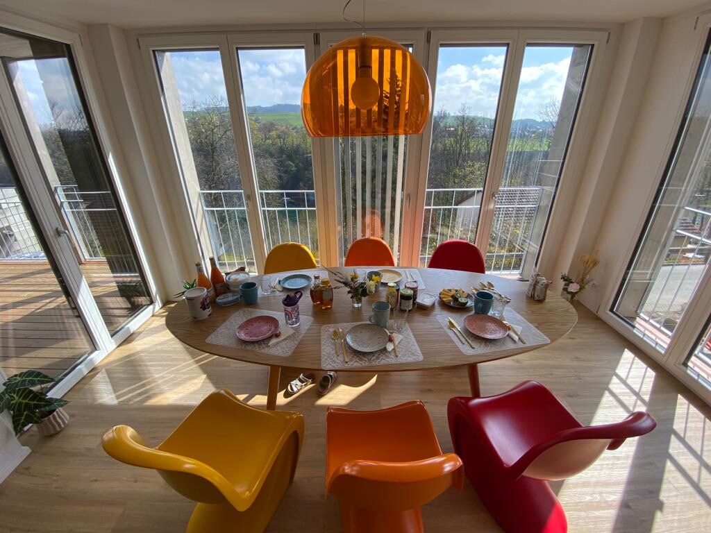 Здравствуйте и добро пожаловать в ваш роскошный временный дом с видом на прекрасные швейцарские Альпы и собственным гидромассажным бассейном! Просторная 4-комнатная квартира площадью 120 кв. м в небольшом районе «Лоттштетен» находится в так называемом «Немецком выступе», окруженном границами с Швейцарией. В квартире с красивой мебелью и собственными сиденьями на открытом воздухе вы можете насладиться идеальным отдыхом и разнообразными возможностями для отдыха на природе. Будем рады видеть вас в ближайшее время!