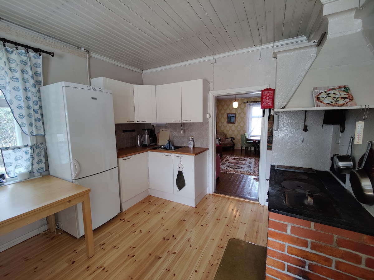 Меблированная 3-комнатная квартира, большая открытая кухня, камин, ванная комната/туалет + туалет. До 6 гостей (две двуспальные кровати, отдельная кровать+ диван-кровать). Тихое место, большая квартира в двухквартирном доме. Арендуется на короткий срок, например, для отпуска, работы или ремонта. Дровяная сауна и камин. 1,5 км до автобусной остановки. В сообщении укажите, зачем вам временное жилье и для кого оно предназначено. Возьмите с собой простыни или арендуйте их за 10 € с человека. Уберитесь сами или заплатите дополнительную плату в размере 80 евро. Зарядка электромобиля согласовывается отдельно. Доступен Wi-Fi.