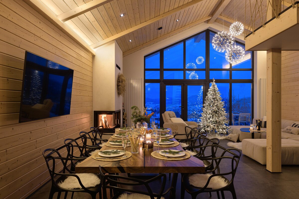 Уютный двухэтажный дом в центре Карпат с панорамными окнами и частным двором! Приглашаем вас насладиться комфортным пребыванием в Буковеле. В доме есть гостиная с диваном и телевизором, кухня с обеденной зоной, прачечная, ванная комната на первом этаже и две спальни с собственными ванными комнатами (душ и ванна), телевизором и шкафами. Большая терраса с обеденным столом, частный двор с грилем и патио для костра, балкон с прекрасным видом. Умный замок для самостоятельного входа, интернет, парковка.