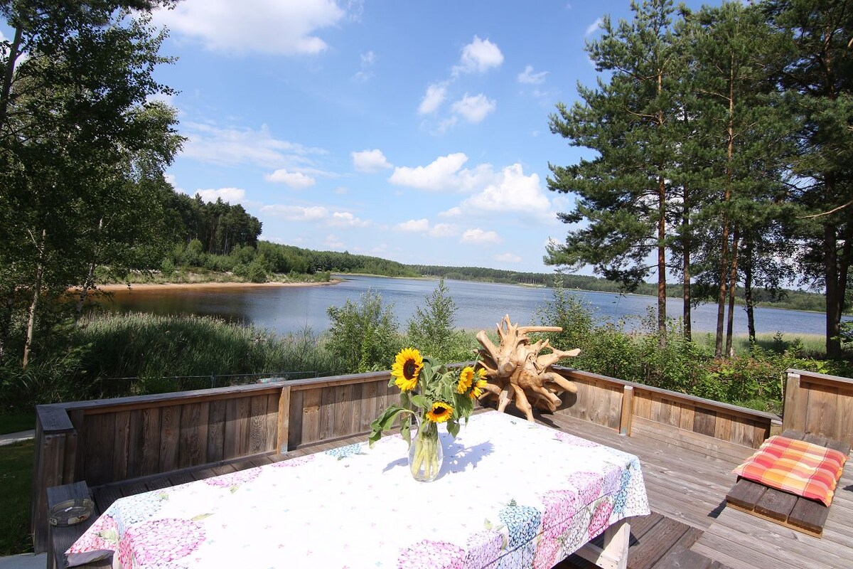 «Почувствуйте себя хорошо и расслабьтесь». С любовью меблированная квартира ждет вас прямо на идиллически расположенном озере в Лузецере-Сенленд. Мы предлагаем Вам возможность насладиться незабываемым и расслабляющим отдыхом вдвоем, с семьей или даже с 2 семьями. - Полностью оборудованная кухня - ванная комната с ванной, душем и туалетом на первом этаже. - Вторая отдельная ванная комната с душем и туалетом на верхнем этаже. - Солнечная комната с панорамным видом. - Крытая деревянная беседка - до 8 человек.
