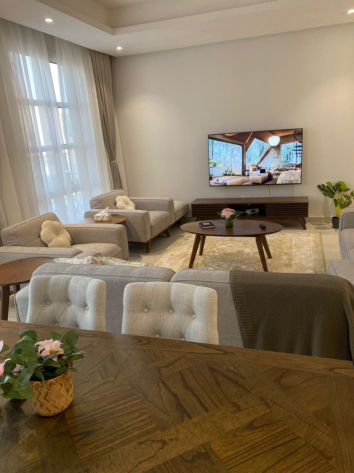 Boho-style retreat in Al Narjis! Cozy 1BR apartment with living area, equipped kitchen, 2 bathrooms, and a 4-seat dining table. Natural plants add freshness, soft lighting and warm tones create a relaxing vibe. Perfect for solo travelers, couples, or short stays. Fast Wi-Fi, AC, and parking included. Enjoy comfort, style, and a peaceful Riyadh stay in a brand-new, inviting space.