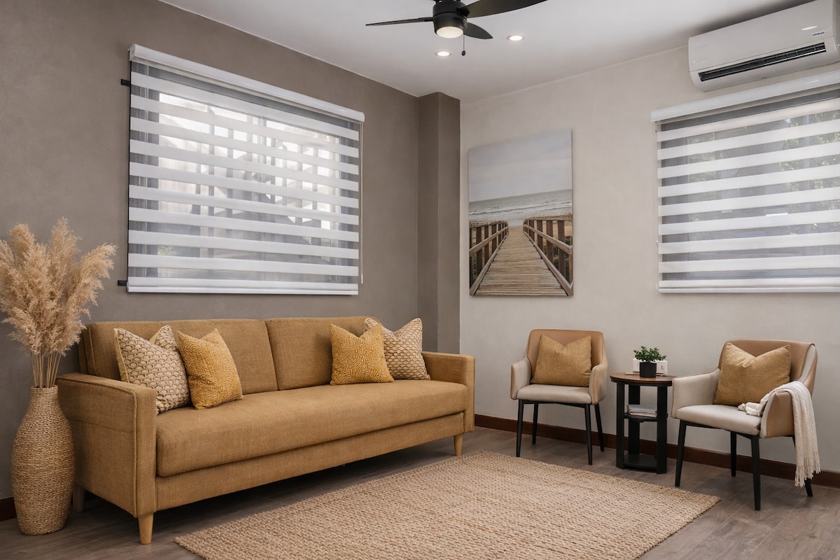 Квартира Mango Vert - это комфортное и уютное пространство, которое идеально подходит для отдыха и развлечений. Мы можем предложить вам: Уютная квартира с двумя спальнями в центре Аримы. Хижины для небольших групп (до 5 человек) Две спальни с двуспальными кроватями. Главная спальня с собственной ванной комнатой (кровать размера Queen size) и диваном-кроватью. Две односпальные (сдвоенные) кровати Рядом с местными удобствами Бесплатный Wi-Fi с кондиционером. Гостиная, кухня и обеденная зона. Безопасная зона с внешним видеонаблюдением Детская кроватка (по запросу) Частная парковка