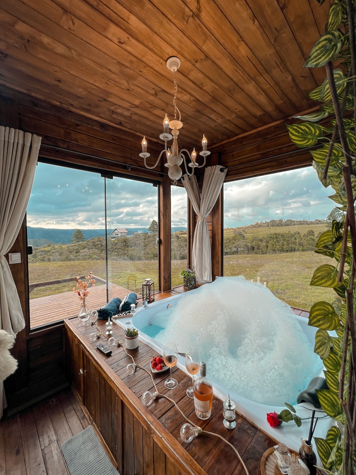 Недавно ОТКРЫЛСЯ Мы превратили пейзаж в вид из окна, который всегда заставил нас вздохнуть. Cabana Porto da Serra - это новейший вариант размещения в горном хребте Санта-Катарина, идеально подходящий для пар или семей до 4-х человек. Вода, которая подает джакузи, поступает из собственного источника. Чистый, кристально чистый минеральный фонтан. Надеемся увидеть вас здесь :) НЕ НАШЛИ НУЖНУЮ ДАТУ? У нас есть еще один идентичный домик на территории. Тот же вид и инфраструктура. Посмотрите мои объявления о хижине (01)