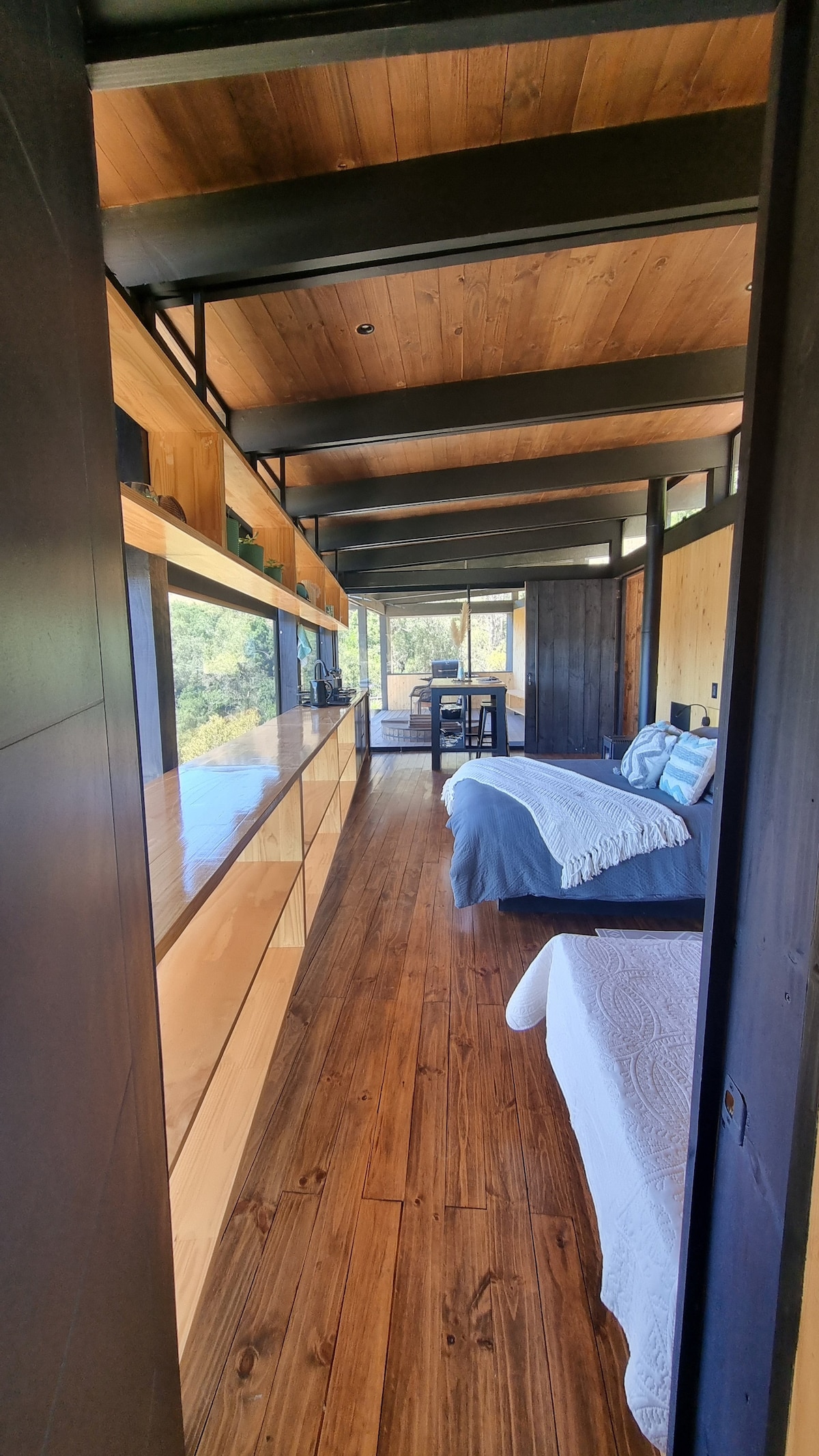 Наслаждайтесь природой в этом мини-доме. В доме есть большая застекленная терраса, чтобы насладиться видом и отдохнуть. Рядом с велопарками и ресторанами. Оснащено Wi-Fi и небольшим столом для удаленной работы, чтобы наслаждаться этим местом. В распоряжении гостей собственная кладовая с ключом для хранения оборудования. Нельзя подключать оборудование с высоким энергопотреблением, такое как микроволновые печи, чайники, фены, обогреватели и т. д.