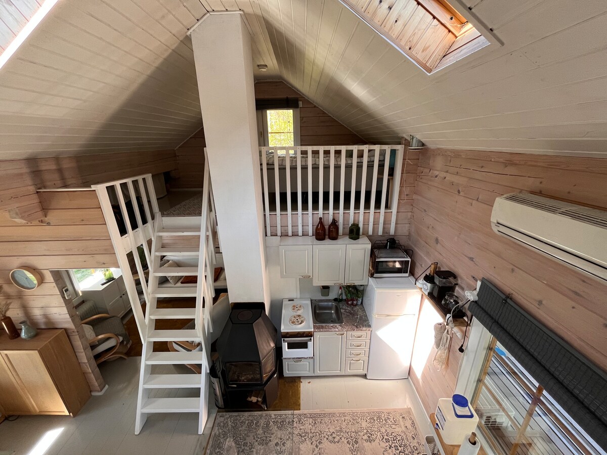 Staying in this mini sauna cabin (20 m²) you can enjoy a view of the river, listen to the sounds of nature or take a walk to the seaside (20 min) After sauna session you can relax in the hot tub. (without bubbles) On rainy days, you can explore Netflix on 55" TV or play board games. Its possible to also use bicycles. Another sauna cabin (Riverside Retreat) is within 40 m from this house so theres a chance that there are max 2 people at the other house same time.