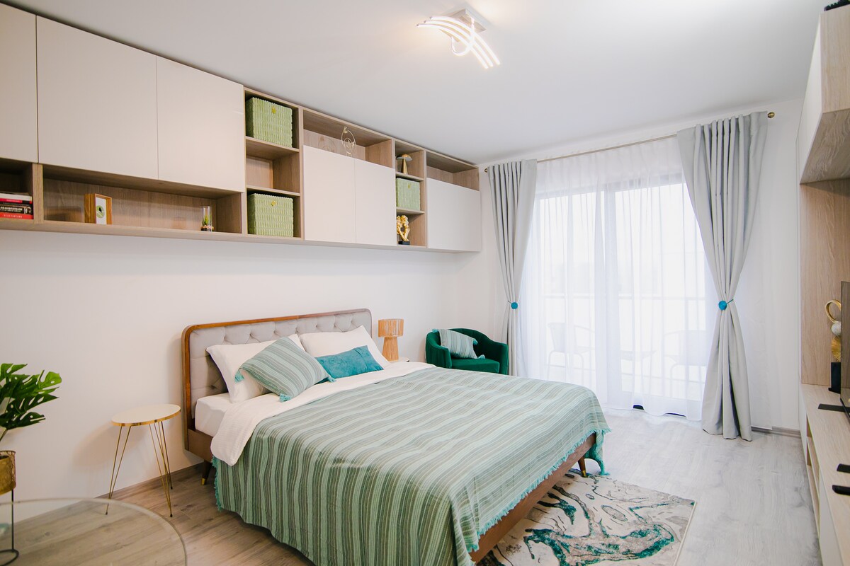 Добро пожаловать в The Moon — Пояна-Брашов! В этой стильной квартире с одной спальней есть двуспальная кровать размера Queen size, удобный раскладной диван и терраса с видом на горы Поставарул. В распоряжении гостей полностью оборудованная кухня с кофемашиной Nespresso, электрической духовкой и индукционной плитой. В ванной комнате есть стиральная машина, а в обеих комнатах есть телевизоры Smart TV и кондиционеры. Идеально подходит для 4 гостей, включая удаленных работников!