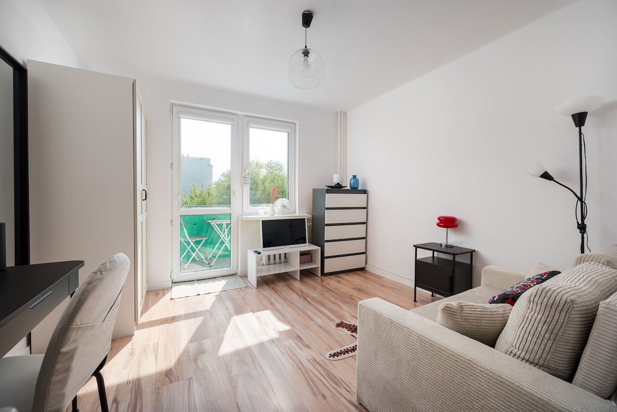 Mieszkanie, do którego Państwa zapraszam, to wygodna, przytulna, jasna i cicha kawalerka. Do dyspozycji gości jest pokój, minikuchnia i łazienka. To idealne miejsce do wypoczynku, nauki, pracy czy spędzenia nocy podczas podróży. Mieszkanie znajduje się na 1. piętrze w małym bloku otoczonym zielenią. Okolica jest spokojna i bezpieczna, zarazem wszędzie łatwo stąd dojechać. Ogromną zaletą jest bliskość Lotniska Chopina (3,5 km). Do centrum można dostać się w 10 minut, na Stare Miasto w 20 minut.