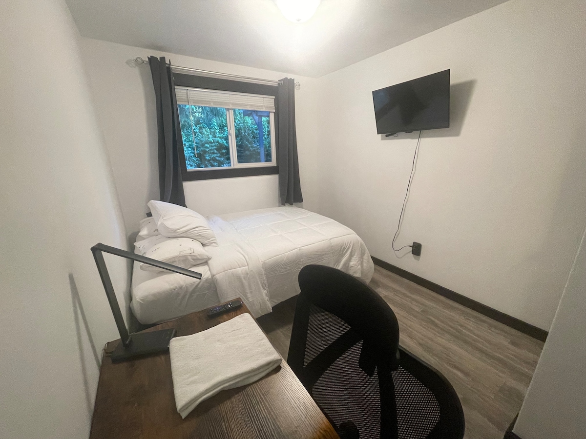 Welcome to our one-bedroom apartment located in the heart of Maple Valley. This small but functional suite is a brand new addition to the house with a separate entry and complete privacy. Newly built kitchen, bathroom, and bedroom with queen size bed, smart TV, and walk-in closet. Enjoy morning coffee watching hummingbirds or an evening glass of wine on your illuminated patio. Enjoy forest living while being close to Maple Valley, I-90, and many hiking/biking trails and outdoor activities.