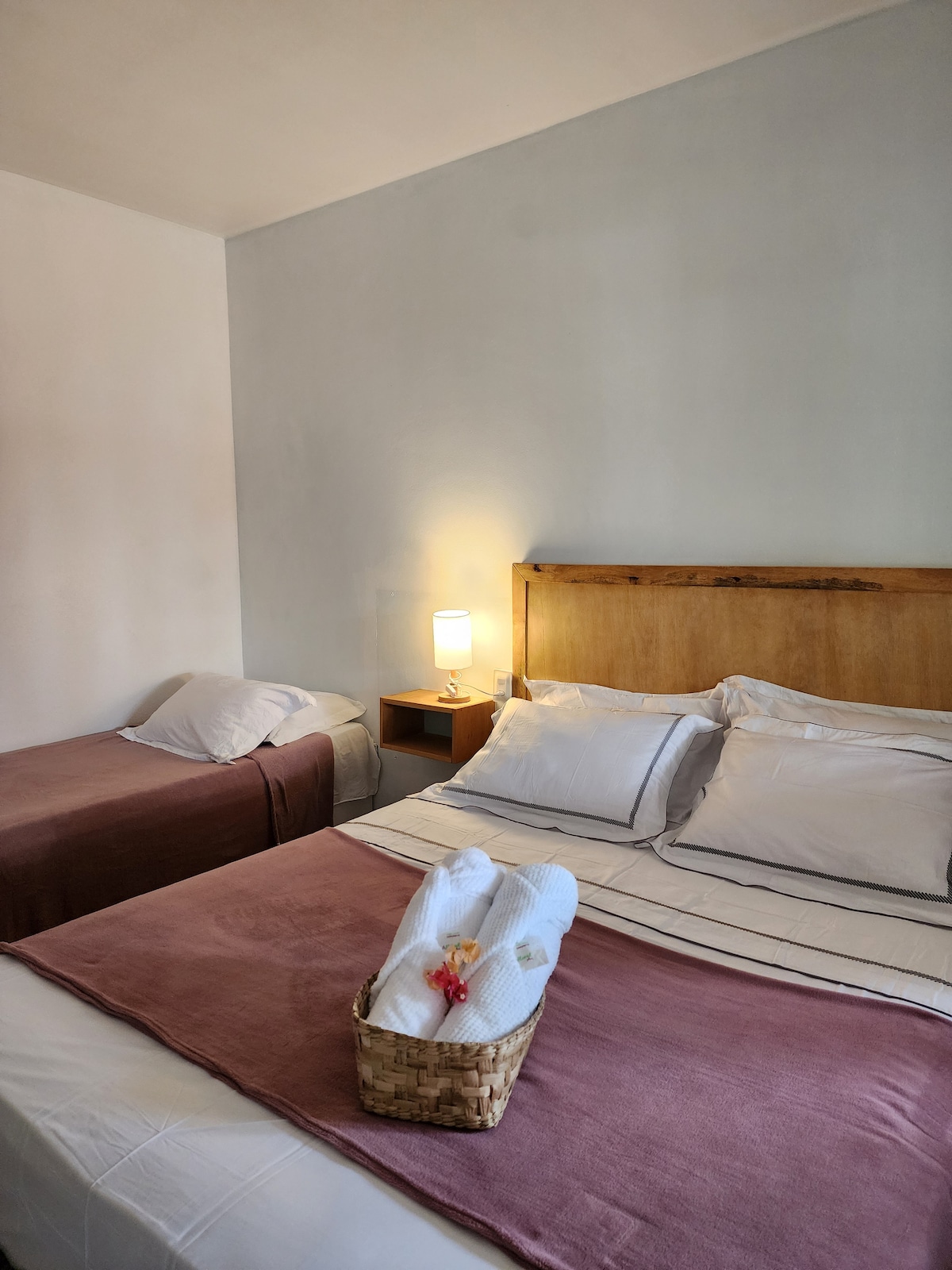 Essa acomodação oferece cama box casal, cama de solteiro, frigobar, smart TV e banheiro privativo.