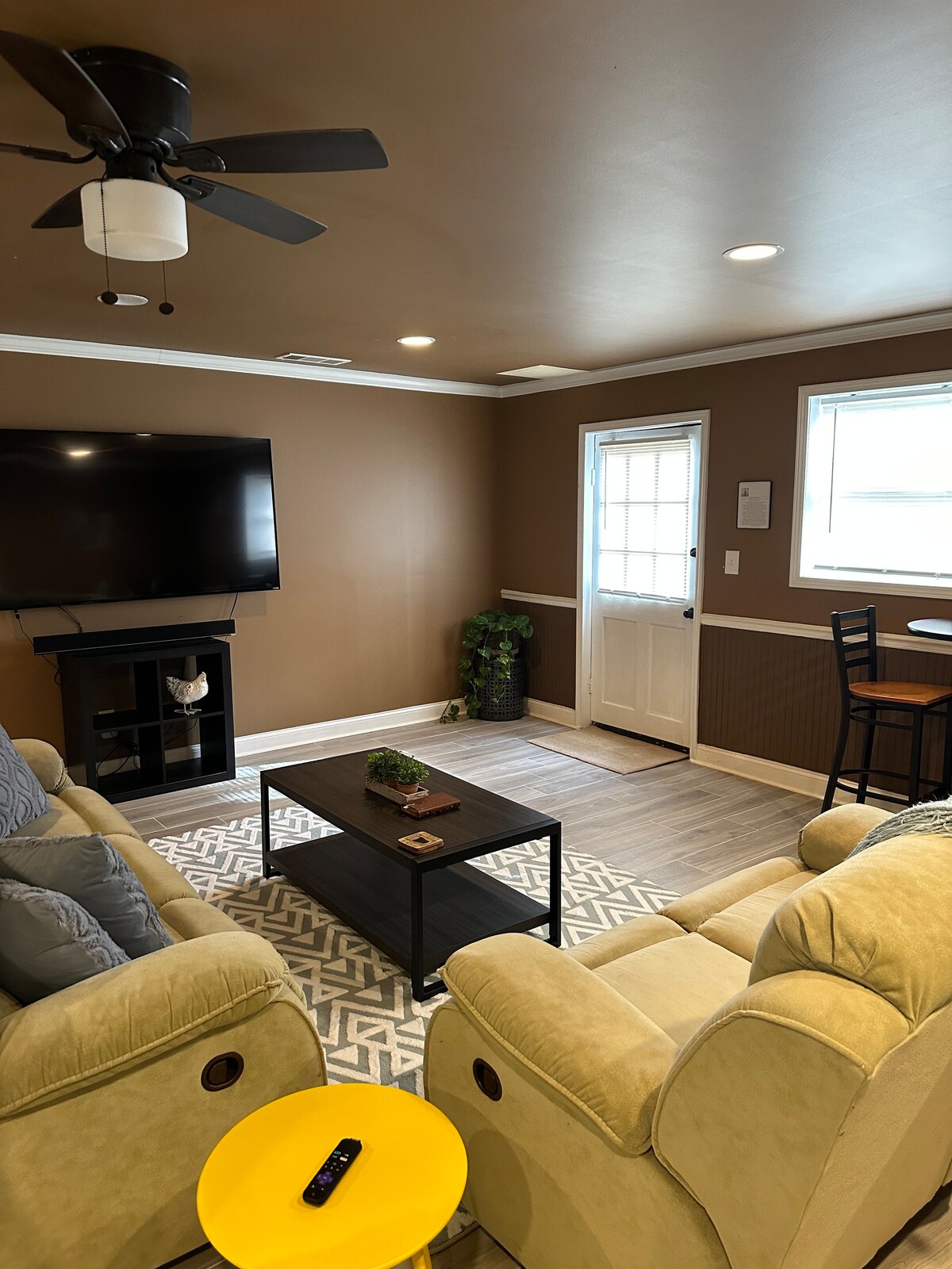 Cozy up at Little Farm at the foothills of the Appalachians. Perfect for couples and traveling professionals, our private walkout basement has a separate driveway and entrance, king size bed and full bath. Comfy reclining loveseat and sofa, 70” HD smart TV with sound bar with Netflix and Amazon Prime, WIFI, refrigerator, microwave, coffee bar with Keurig Coffee Maker, and bistro table. Outside enjoy the Little Farm views of our flock under gorgeous Magnolia complete with fire pit and glider.