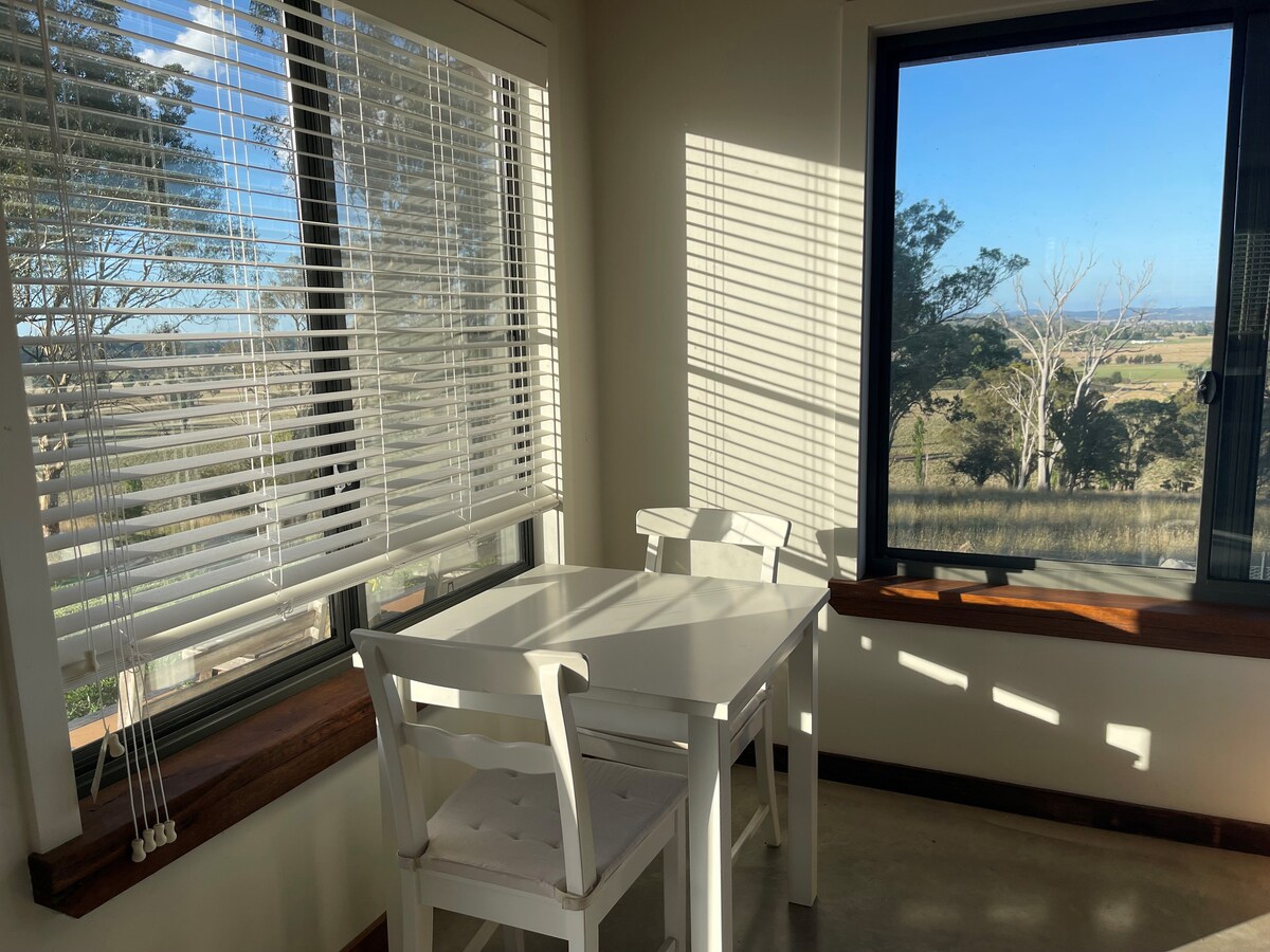 Дизайнерский коттедж со вкусом обставлен с потрясающим видом на живописную ферму с козьей фермой - рядом с городом. Очень уединенный и спокойный. Этот современный коттедж, спроектированный по назначению, был построен в 2020 году. Спальня с видом на северо-восток с двуспальной кроватью размера King size с видом на кенгуру и диких коз. В нашем коттедже есть все, что хочет взыскательный путешественник. Почувствуйте настоящую жемчужину, всего в 5 км от Глен-Иннес, высоко на холме, с видом на город. Обратите внимание, что дорога вверх по загородной гравийной дороге.