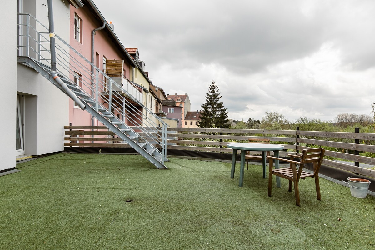 Наша квартира площадью 120 кв. м с любовью отремонтирована и идеально подходит для пар, семей и любителей природы. Вас ждет уютная гостиная с камином и выходом на террасу, хорошо оборудованная современная кухня, спальня с гардеробной, стильная ванная комната и красивая детская комната. Частная сауна, большой сад с парковой тематикой и старым дубом, терраса с садовой мебелью и барбекю. Тихое место рядом с лесом — идеально подходит для пеших прогулок и отдыха. Только 12 минут до Саарбрюккена. Можно с собаками.