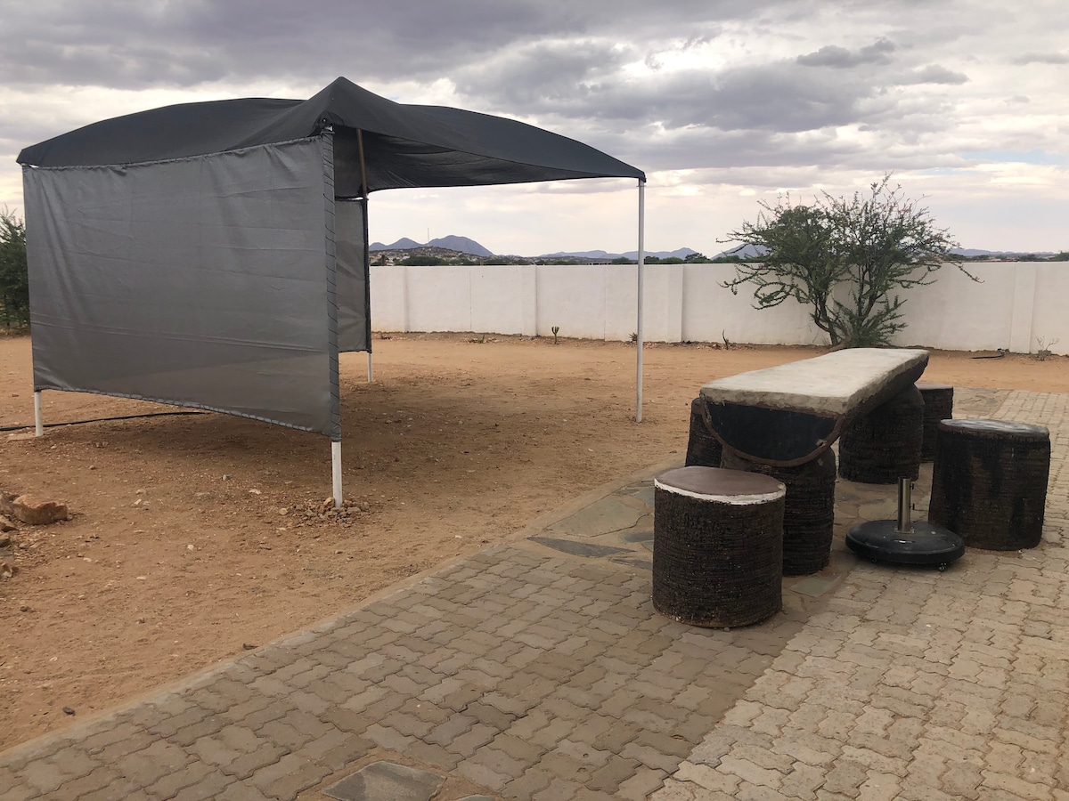 Это комната 2 из двух смежных комнат, которые можно забронировать вместе. Смотрите отдельное объявление для комнаты 1. Комната 2: расположена в безопасном закрытом гольф-комплексе недалеко от Виндхука. Отдельный вход и парковка. В пешей доступности от магазина Omeya, аптеки и гольф-клуба. Внешний дворик. Бар-холодильник и кофе-станция. Wi-Fi и Smart TV с Netflix. Тихий и безопасный, на природе.