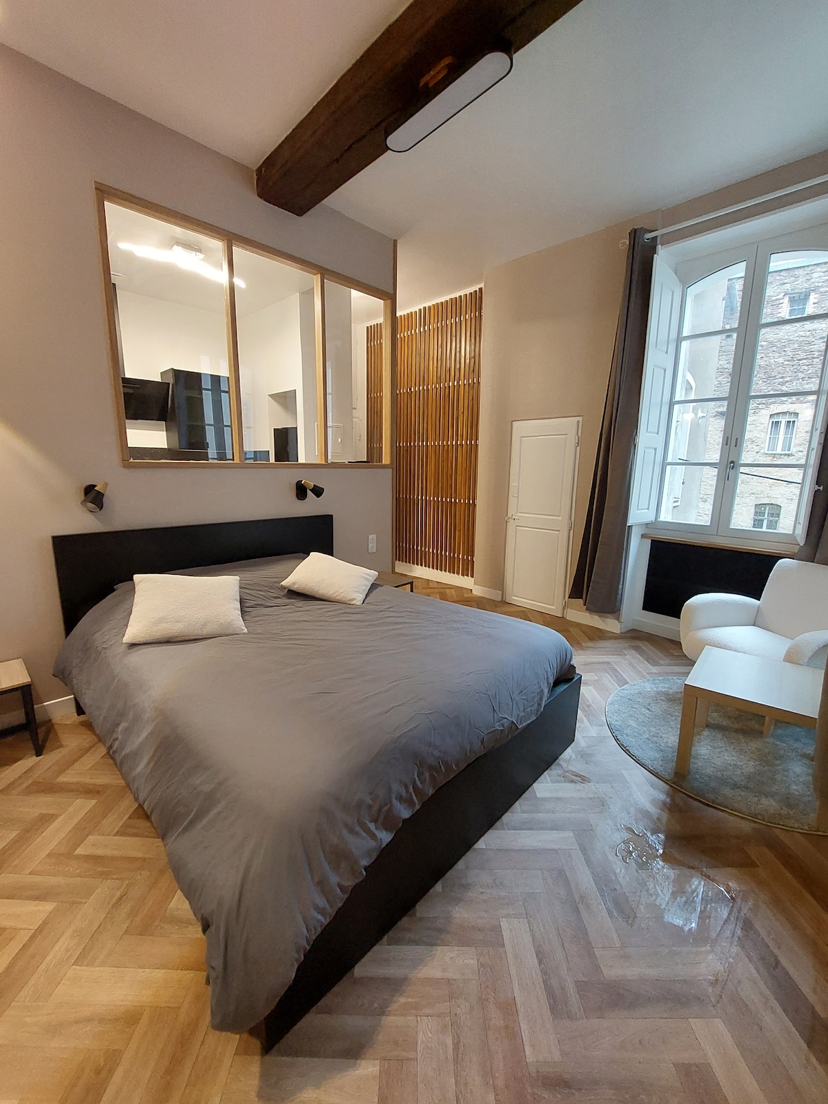 Остановитесь в центре города в этой необычной и тихой квартире (полностью во внутреннем дворе) с террасой на крыше. Полностью отремонтированный дом дизайнером интерьера сочетает в себе винтажный шарм и современного комфорта. Вы будете в нескольких шагах от метро République и Halles Centrales и в нескольких минутах ходьбы от всего, что может предложить Ренн. Отличный выбор прогулок и вкусных ресторанов поблизости.