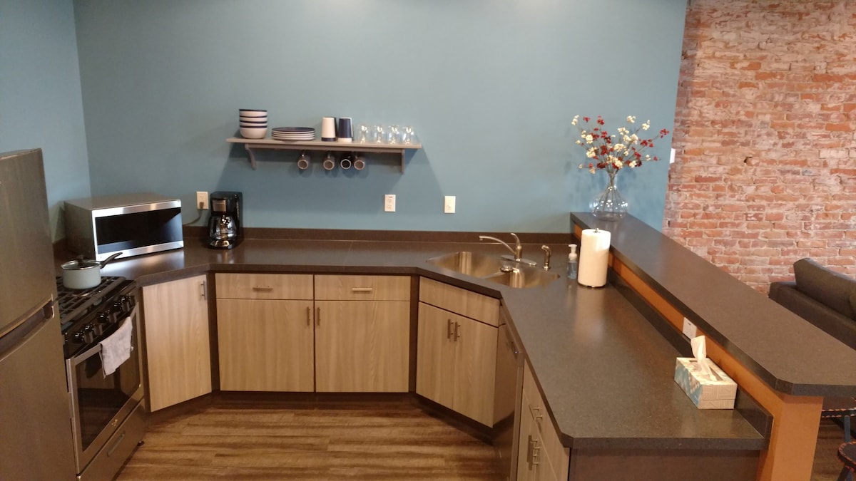Квартира с одной спальней в историческом центре Элмора, штат Огайо, недалеко от шоссе I-80/90 (автомагистраль Огайо). Высокие потолки и большие окна. Двуспальная кровать размера King size премиум-класса и диван-квин-спальня. Отремонтированная ванная комната в январе 2025 года. Укомплектованная кухня. Стиральная машина/сушилка. Доступ в Интернет. Расположена рядом с внутренней тропой Северного побережья, парками, ресторанами и барами. 20 минут езды до островов Лейк-Эри и центра Толедо.