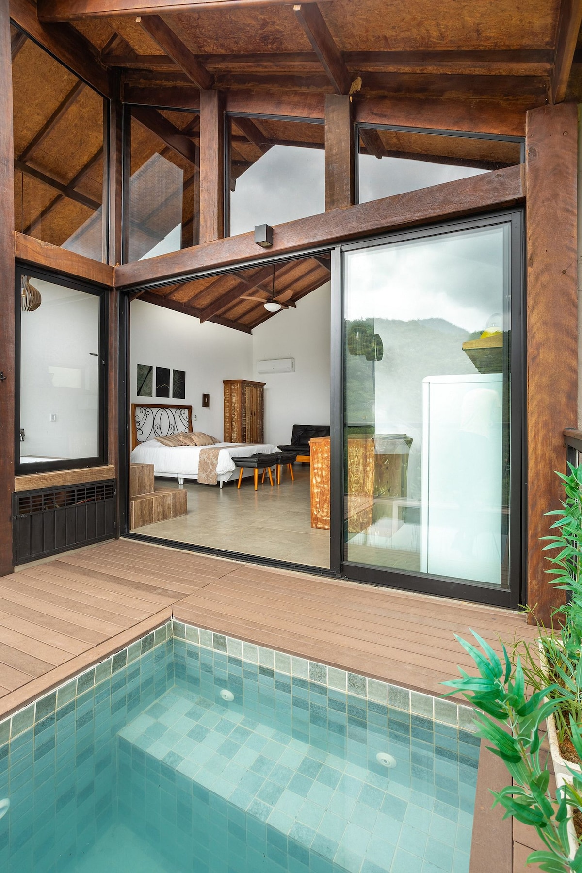 В Refúgio Cabanas, в Висконде-де-Мауа, каждая деталь была создана для пар, чтобы они могли насладиться глубокой связью. В домике сочетаются комфорт и природа, предлагая тишину, уединение и очарование в любое время года. Погруженный в лес и с водопадом в кондоминиуме, это идеальное место, чтобы восстановить энергии, замедлить и создать незабываемые воспоминания в убежище мира и романтики. Впечатления пары усиливаются благодаря гидромассажу, интегрированному с природой. Это будет незабываемо.