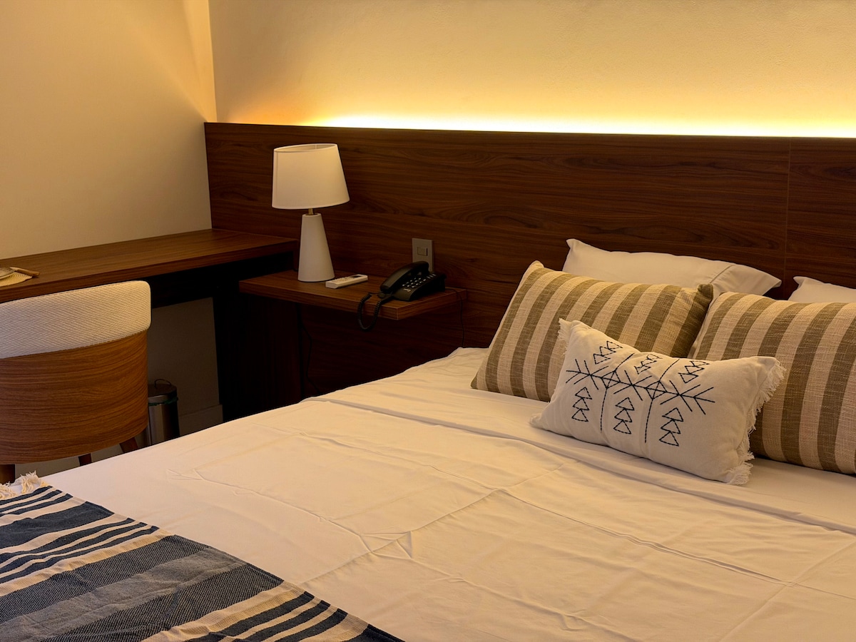 В одном квартале от пляжа. Хозяин говорит на немецком, английском и испанском языках. Тихое место, много зелени, балкон с прекрасным видом, гамак и утреннее солнце. Интегрированная гостиная с диваном-кроватью, телевизором и сплитом. Спальня с двуспальной кроватью размера Queen size, шкафом и сейфом. Кондоминиум с бассейном с подогревом, сауной, рестораном, продуктовым магазином и парковкой. 📍 Хорошее расположение: рядом с рынками, торговыми центрами и пляжем, с доступом на машине, метро, автобусе, Uber и такси. ⭐ ИДЕАЛЬНО ПОДХОДИТ ДЛЯ: • Пары. • Небольшие семьи • Руководители • Удаленная работа + отдых.