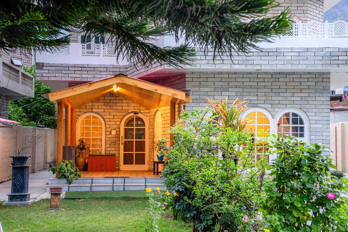 • Частная вилла премиум-класса на берегу реки с 2 спальнями и кухней для семей и деловых поездок. • Частный газон, вид на горы и реку. • Вечера с костром и барбекю под гималайским небом. • Свежие домашние блюда для вегетарианцев/невегетарианцев, теплое гостеприимство. • Оборудованная кухня. Газ, обратный осмос и кухонные принадлежности. • Быстрый Wi-Fi + полное резервное питание. • Разрешено проживание с животными, безопасное для детей закрытое жилье. • Легкий доступ к шоссе, но спокойное место. • Идеально подходит для роскошного отдыха, встреч и выездов за город. Просыпайтесь под мелодии реки, пейте чай на лужайке, расслабляйтесь в чистом гималайском спокойствии!
