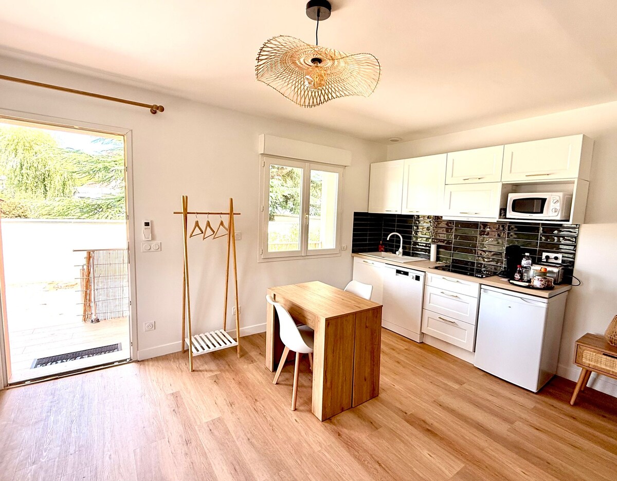 3* T2, тихий район. Идеально для пар или двух коллег с отдельными кроватями (кровать размера Queen size + диван-кровать с наматрасником). Максимум 2 гостя (доплата 20 € за 2-ю кровать). Постельное белье и полотенца включены. Терраса, сад, парковка и бассейн (июнь). Оптоволоконный Wi-Fi, письменный стол, душевая комната. Общая мини-кухня (наши 3 кошки проходят через нее), но запертая дверь обеспечивает полную конфиденциальность для ночной зоны. Идеально для профессионалов/отдыха: 5 минут до автомагистралей, 35 минут до Лиона/Eurexpo. Приглашаем велосипедистов! С нетерпением ждем вас!