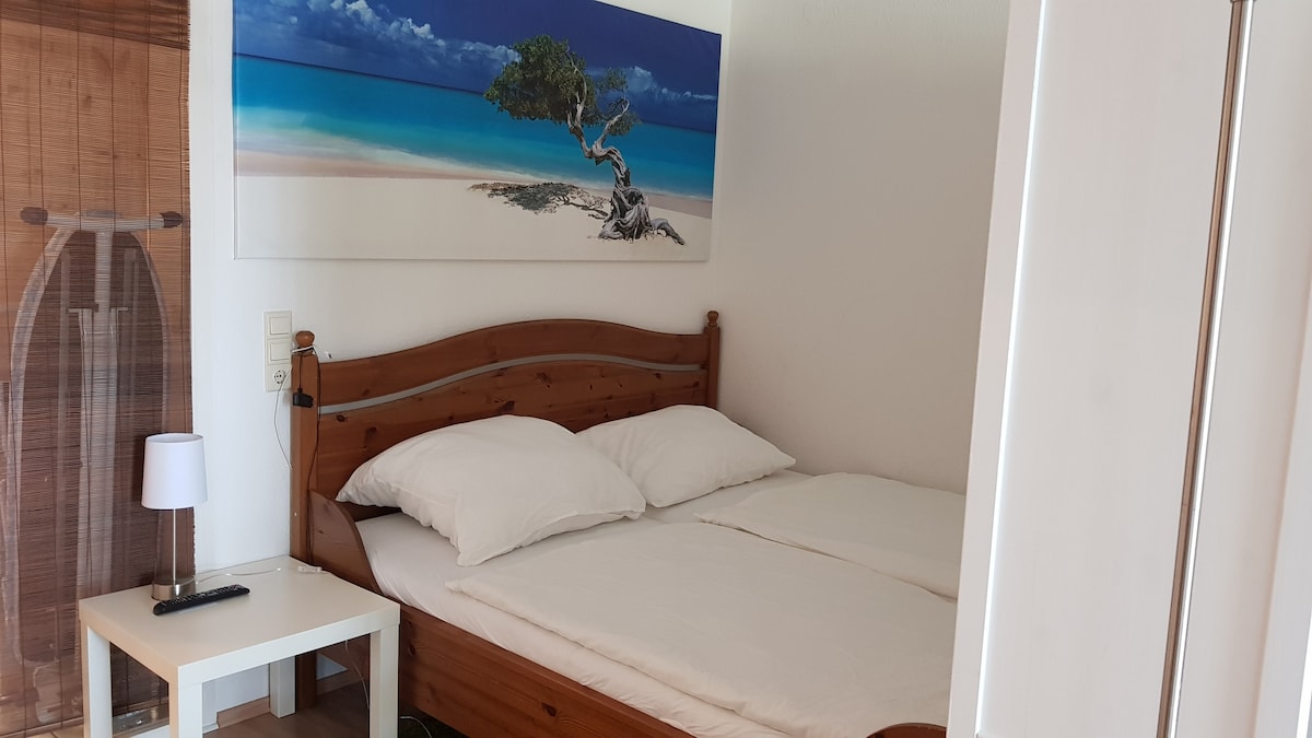 Schöne kleine Ferienwohnung. Komplett und gemütlich eingerichtet, für 3 Personen. Die Wohnung verfügt über zwei Schlafzimmer, eins mit zwei Einzelbetten die zusammen gestellt werden können, eins mit einem Doppelbett von 1,4 mal 2,0 Meter. Die Wohnung hat einen separaten Eingang. Vor der Wohnung befindet sich eine weitere Sitzgelegenheit. Bettwäsche/Handtücher inklusive, Pkw Stellplatz vorhanden , Wlan frei. 1 oder 2 Personen 45 Euro/Nacht 3 Personen 65 Euro/Nacht Endreinigung 35 Euro