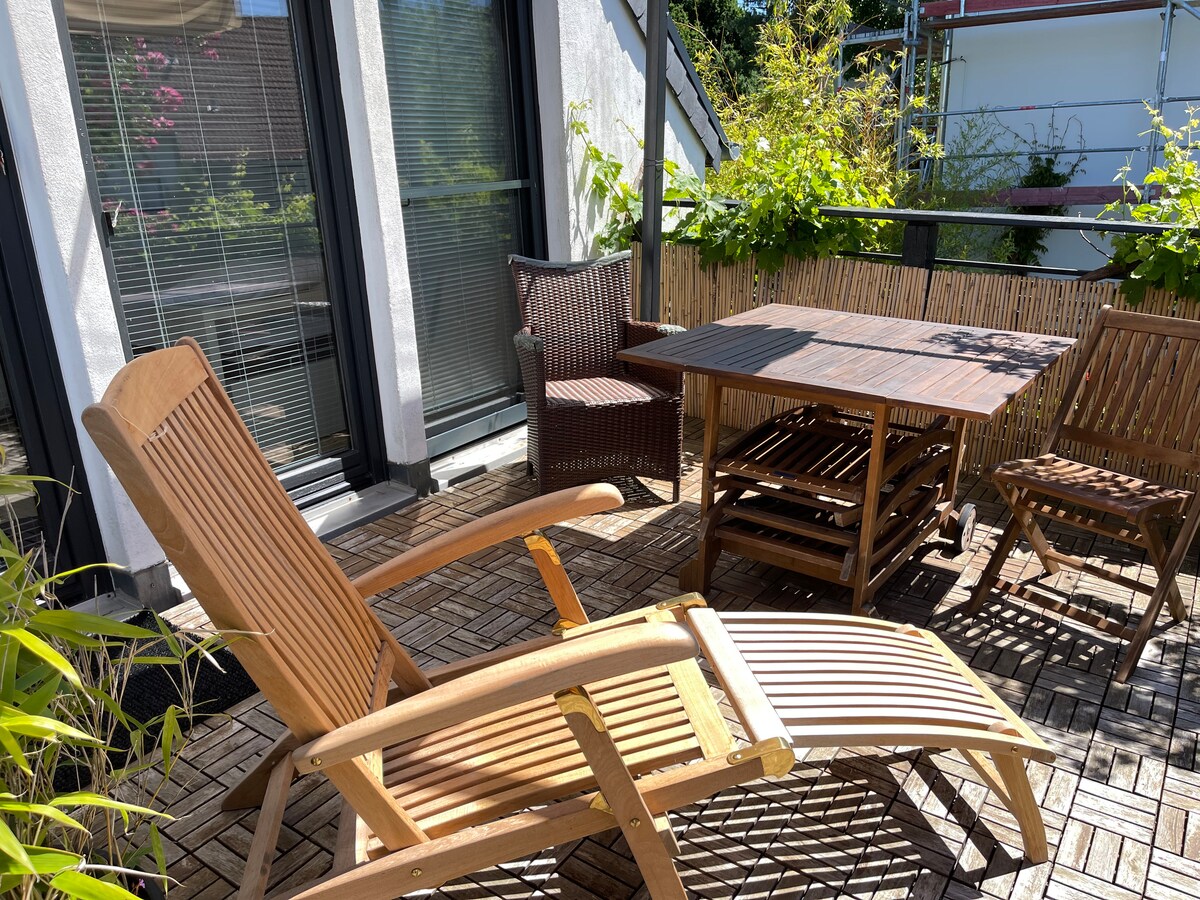 Добро пожаловать в Нойвид! 🌿 Мы (Лукас и Бритта) с любовью превратили наш бывший двойной гараж в современную квартиру площадью 80 м² с собственным садом, большой террасой, отдельным входом и парковкой. Наше жилье в настоящее время является одним из лучших в регионе – благодаря центральному расположению между Кобленцем и Бонном, бесчисленным возможностям для отдыха прямо за дверью и высокому уровню комфорта.