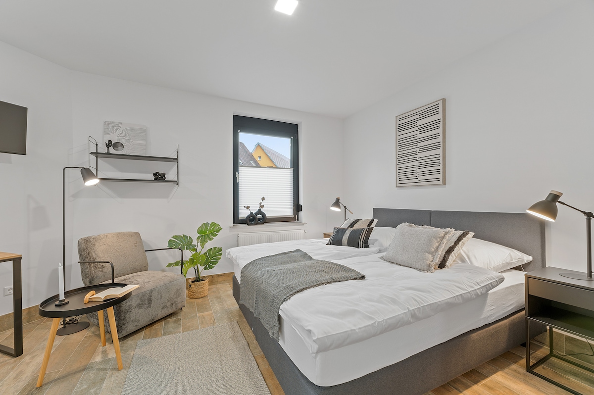 -180 cm King-Size Bed- Welcome to our modern micro-apartments in the heart of Kaiserslautern! Perfect for young professionals, students, and commuters, each unit is fully equipped for your daily needs: a coffee station with fridge, microwave, Nespresso machine, and kettle, a cozy bed, smart TV, and a private bathroom with shower. Enjoy the central location, close to the university, shops, and public transport. Shared areas like the terrace, laundry room, and lobby complete the offer.