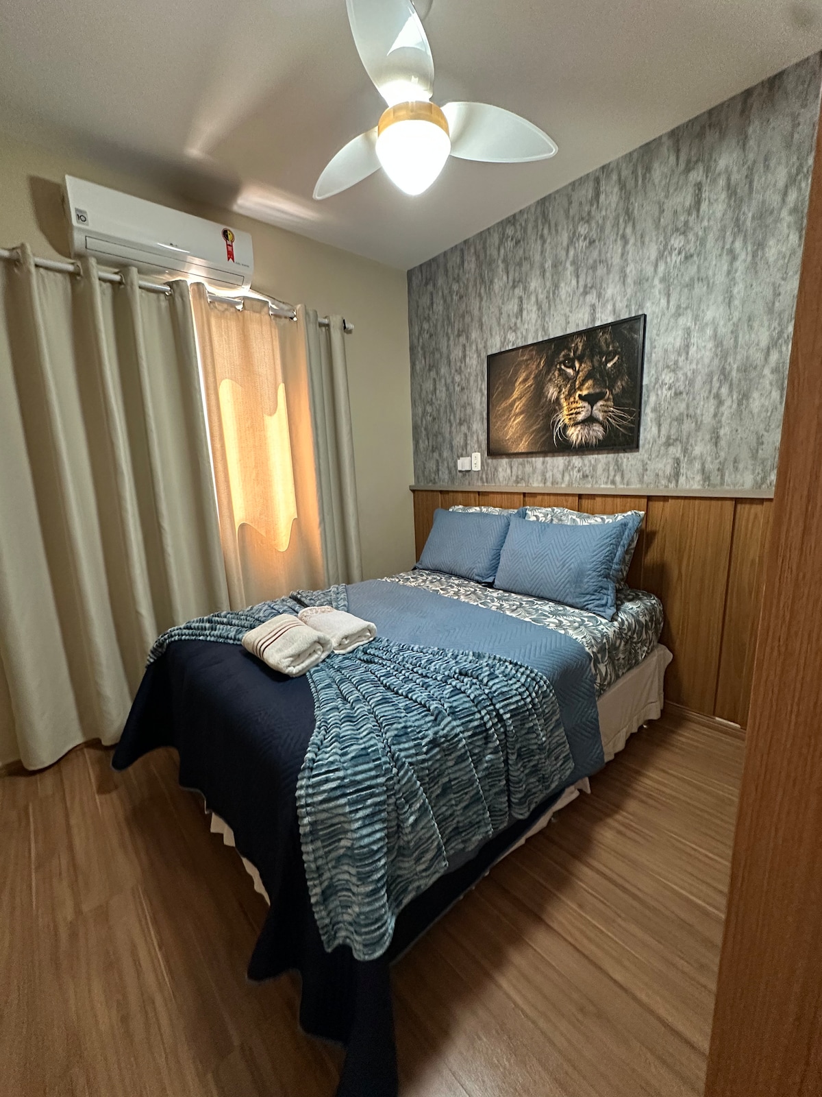 Уютная квартира, есть 1 двуспальная кровать, 1 диван-кровать, вмещает до 4 человек (2 пары). Она расположена в южной зоне Рибейран-Прету, недалеко от торговых центров Iguatemi и Ribeirão, вокруг кондоминиума есть пиццерии, рестораны, супермаркет Pão de Açúcar и парк для прогулок с домашним животным.
