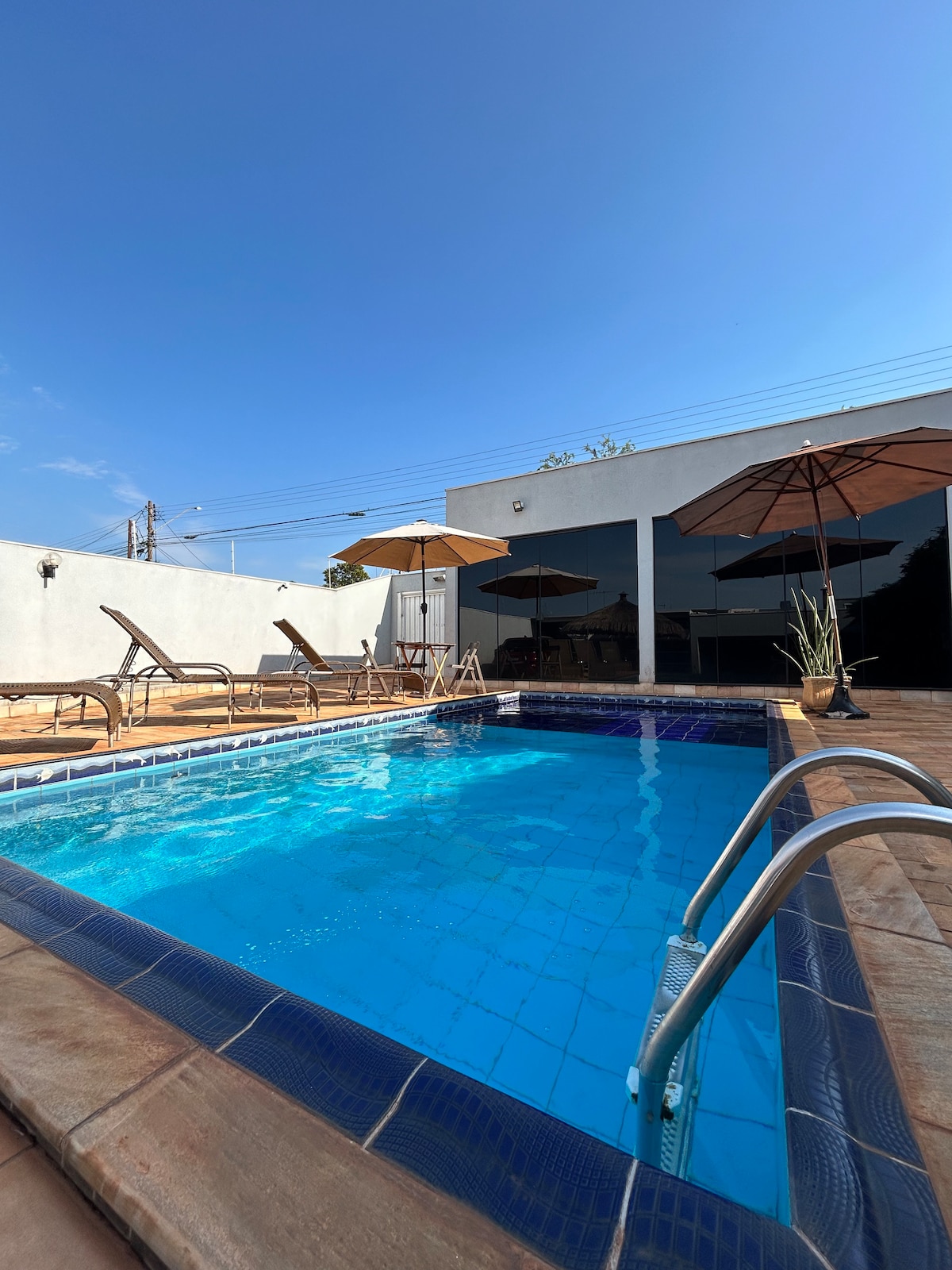 20 минут до Agrishow. Просторный дом, оборудованный всем необходимым для комфортного проживания, большой балкон, тихий район, свежие комнаты, потолочный вентилятор в спальнях и гостиной. Телевизор в комнате с Netflix, Wi-Fi, зона барбекю с бассейном. Отличное расположение, в 5 минутах езды от одного из главных проспектов города, рядом с Burger King, McDonalds, Subway, тренажерным залом (Smart Fit), рынком и заправкой.