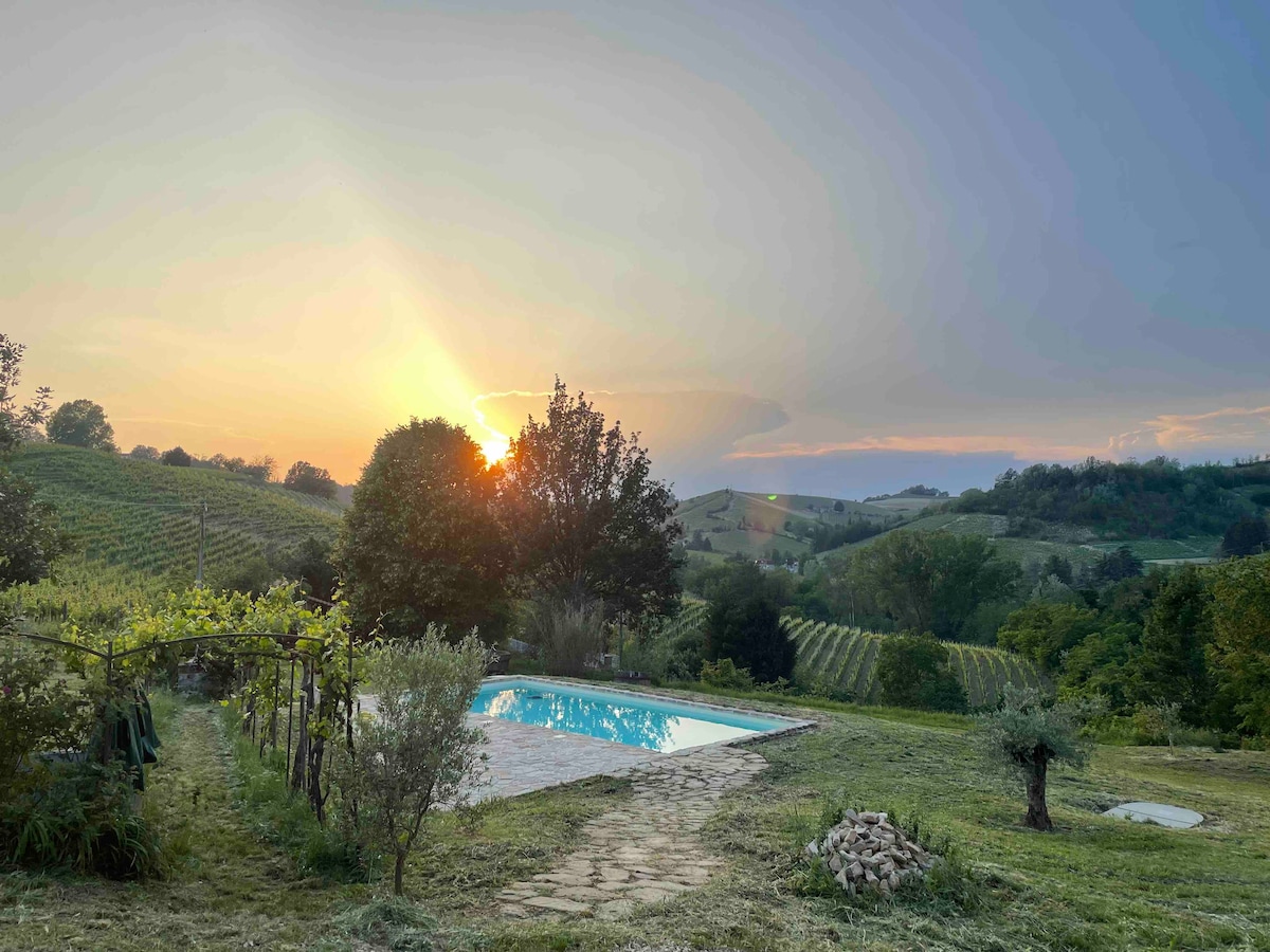 Регион Пимонт - один из прекрасных секретов Италии. Наш дом славится своим вином, трюфелем, едой и ландшафтом, находится прямо в центре самых знаменитых виноградников ЮНЕСКО на дороге Лос-Анджелеса МАДЖОРА, одной из самых живописных дорог. Недавно отремонтированная квартира в стиле лофт с отдельным входом, просторной террасой, большой гостиной, полностью оборудованной кухней, спальней и ванной комнатой, а также нашим бассейном с соленой водой. Вместимость до 5 человек. Зарядное устройство для электромобилей с 11:00 до 17:00.