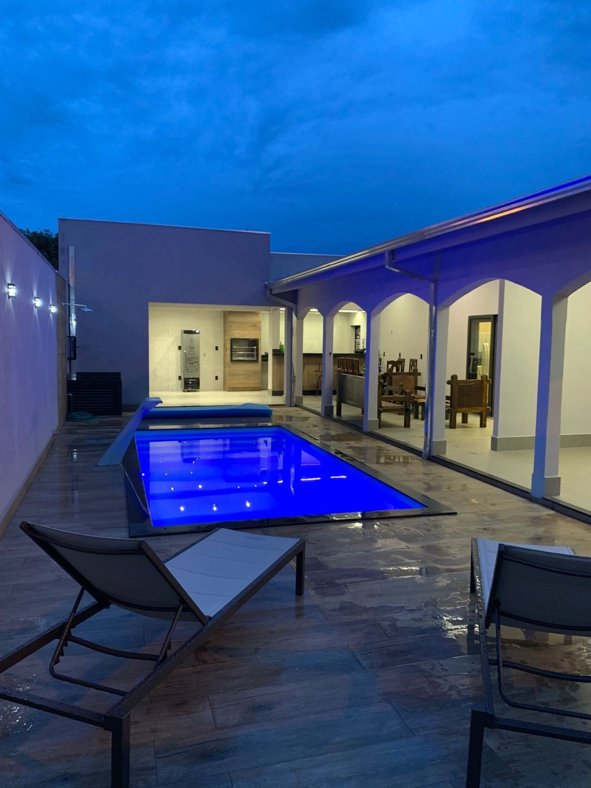 🛏️ 4 люкса с кроватью, ванной посудой и кондиционером. 🚾 2 лавабо, женщина и мужчина Бассейн с🏊♂️ подогревом, джакузи и освещением 🏠 Вмещает 10 человек на кроватях плюс 3 односпальных матраса. 🍽️ Кухонная утварь 🍖 Барбекю. 🍻 Cervejeira 💦 Очиститель воды 🛜 Бесплатный беспроводной Интернет. ⛴️ Condomínio Morada da Fronteira с доступом к плотине и пристани, киоскам и частному пляжу. 🚓 Стойка регистрации круглосуточно и без выходных. Футбольное поле и поле для ⚽️ тенниса на пляже 🏘️ Кондоминиум в 2 км от центра города.