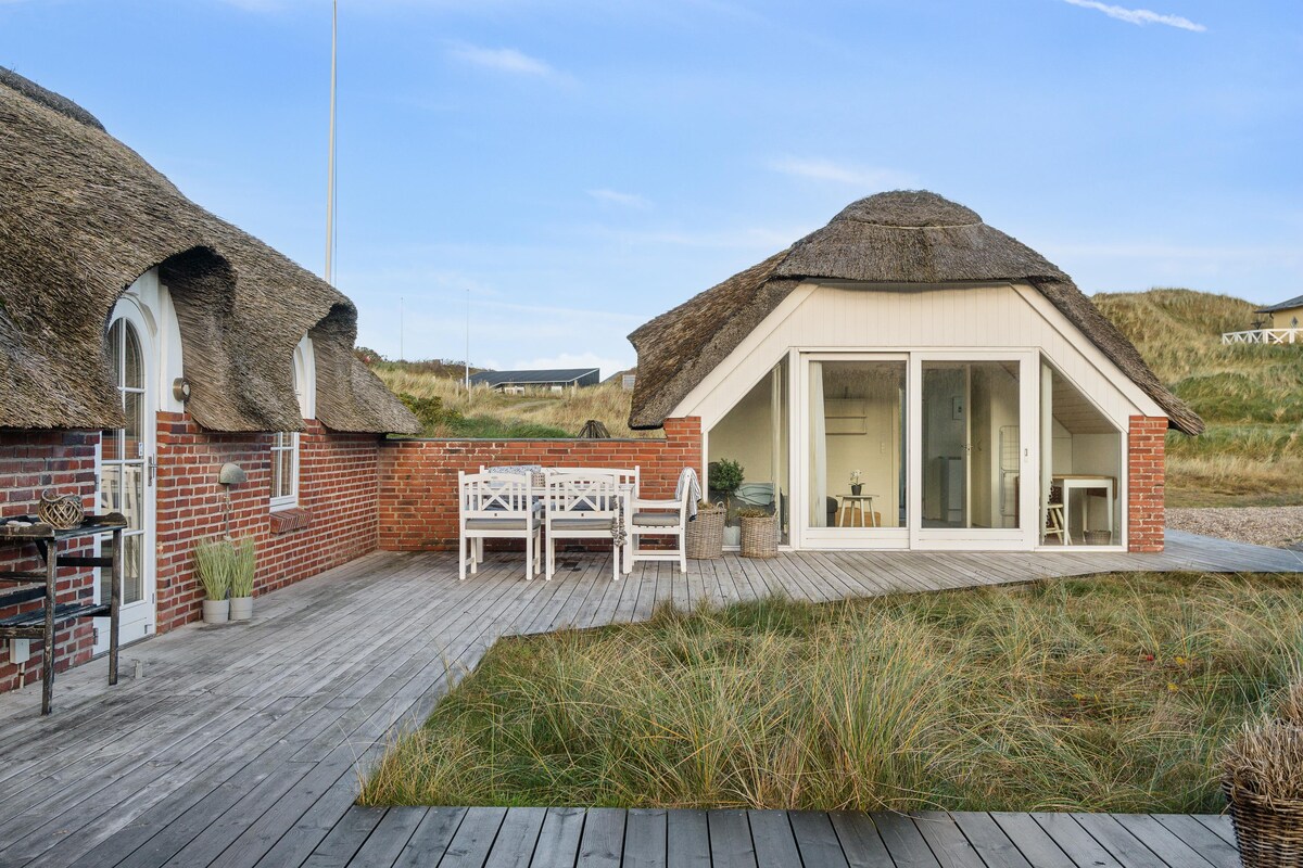 Если вы мечтаете о праздничной идиллии, где очаровательный соломенный дом расположен в фантастическом пейзаже дюн, окруженном травой маррама и вереском, то этот дом в Нордзёвее - идеальный выбор. Здесь вы так близко к морю, что можете слышать волны, отдыхая на большой террасе. Этот пляжный дом для некурящих с впечатляющей террасой красиво расположен в дюнах недалеко от Сёндервига. Очаровательный дом для некурящих с соломой рядом с пляжем Дом тщательно оформлен и излучает гармоничную атмосферу, которая сразу заставляет вас чувствовать себя как дома. Яркие стены и открытые балки добавляют дополнительный шарм в дом для отдыха. Большие окна приближают вас к природе и дают вам ощущение жизни прямо в живописном районе. Открытая кухня и гостиная позволяют проводить время вместе, как во время приготовления пищи, так и во время уютных вечеров на диване. В прохладные дни вы можете зажечь дровяную печь и насладиться теплом от потрескивающего пламени, пользуясь бесплатным подключением к Интернету или проводя время с детьми. В доме есть две ванные комнаты, что практично для больших групп, а стиральная машина и сушилка - приветственная помощь для семей с маленькими детьми. Терраса приглашает загорать и отдыхать Из гостиной дверь ведет на большую террасу, где можно найти укрытие в любую погоду. Здесь вас ждет садовая мебель и гриль, чтобы вы могли наслаждаться солнечными лучами в шезлонгах днем и готовить барбекю с семьей вечером. За ужином, потягивая бокал вина, вы можете спланировать экскурсии и мероприятия в ближайшие дни, а день может закончиться уютной вечерней прогулкой. Пляж находится всего в 400 метрах и до него легко добраться, даже для самых молодых членов семьи. Здесь дети и собака могут свободно играть на песке или у воды, наслаждаясь захватывающим видом. Hvide Sande, Søndervig, Ringkøbing - все поблизости Если вы хотите исследовать другие районы, поблизости есть множество интересных мест. Поездка до Hvide Sande, Søndervig и Ringkøbing займет всего несколько минут. Здесь вы найдете красивые песчаные пляжи, очаровательные магазины и уютную атмосферу, которую стоит испытать.