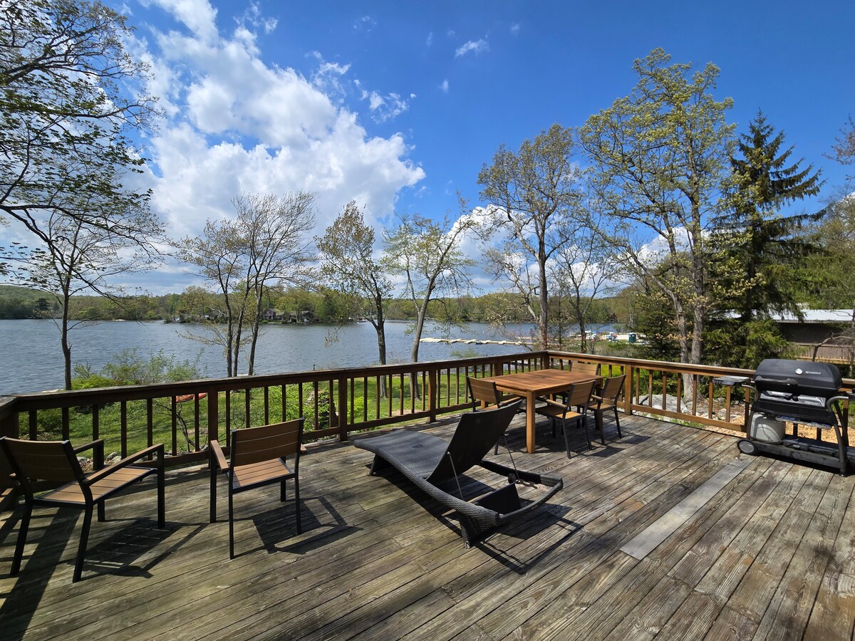 Уютный домик с современными удобствами, включая новую мебель, технику, Интернет, Wi-Fi и телевизор. Наслаждайтесь гостиной и столовой открытой планировки с полностью оборудованной кухней, спальней с кроватью размера Queen size, офисом и ванной с душем. Большая терраса с газовым грилем и множеством сидений с видом на озеро. Парковка на два автомобиля. В пяти минутах от деревни Гринвуд-Лейк, в 15 минутах от деревни Уорик и в окружении отдыха, еды, магазинов и многого другого. Разрешение № 34312