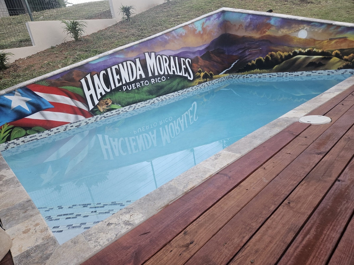 Bienvenidos a Hacienda Morales, un alojamiento familiar lleno de color, diversión y paz en el corazón del campo en Ceiba, P.R. Desde su vibrante mural en la piscina hasta su cuarto de juegos, cada rincón tiene alma, historia y alegría. Ubicada a minutos del ferry a Vieques y Culebra, con vista a el Bosque Nacional El Yunque, Hacienda Morales es perfecta para familias, grupos de amigos y parejas que buscan descanso, conexión con la naturaleza y comodidades modernas en un entorno rural.