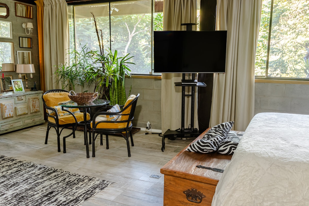 Здравствуйте, добро пожаловать! Микродом имеет особенный дизайн, который полностью интегрируется с природой. Частный дом, независимый и полностью частный. Пребывание снаружи или внутри почти одинаково приятно. Уютная атмосфера интерьера дома, благодаря преобладанию больших дверей и стеклянных стен, приносит свежее освещение и запах природы, который входит в пространство, дает приятное ощущение благополучия и связи с природой. Остановитесь в этом Впечатлении!