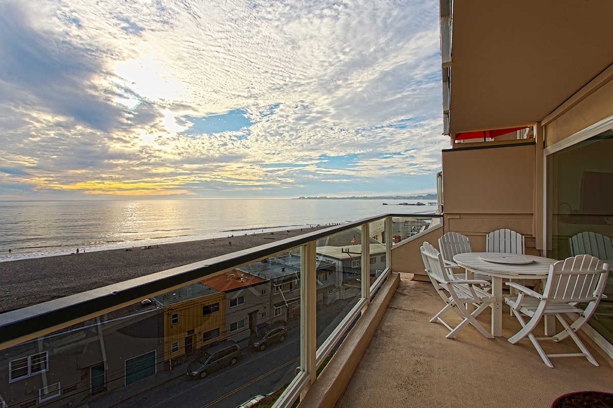 Потрясающая квартира с видом на океан с видом на Монтерей И Санта-Крус. Да, у вас есть рассвет и закат с обеих палуб. Двухэтажная вилла Seascape, Саут-Блафф. Очень хорошо спроектированное пространство с гостиной, кухней, террасой и дамской комнатой на первом этаже, двумя спальнями, двумя ванными комнатами и второй террасой наверху. Wi-Fi, бесплатная парковка, ОДИН бассейн с подогревом на СЕВЕРНОМ ОТКОСЕ, короткая прогулка до пляжа по специальной дорожке. Шампунь/кондиционер/лосьон L'Occitane, кофе Nespresso. Коктейльный аппарат Bartesian.