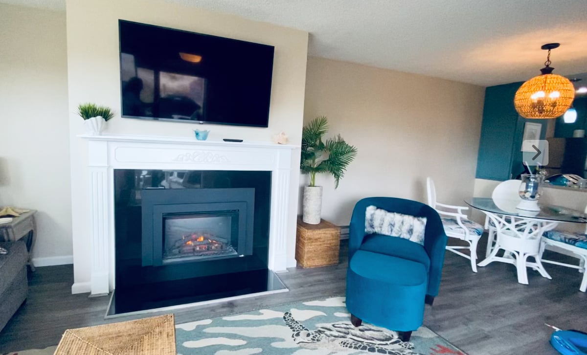 Рай для любителей пляжа всего в нескольких шагах от песка. Романтический отдых для двоих с камином с двуспальной кроватью размера KING size, слушая звуки океана или наблюдая за потрясающими закатами из нашего патио. Четыре человека могут легко поместиться благодаря удобной кровати. Почувствуйте романтику в тот момент, когда вы входите в дверь. Электрический камин снимает прохладу в зимние дни, большой телевизор с плоским экраном. Отдохните от сумасшествия жизни и обновите свой разум и душу. Волшебная атмосфера нашего дома не разочарует.