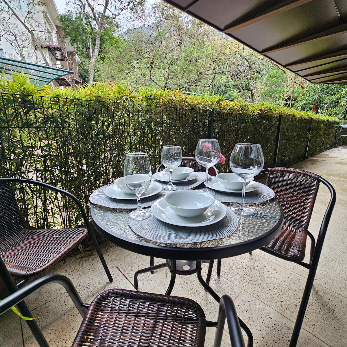 Полностью меблированная квартира на первом этаже с садом. Вокруг много зеленых зон, садов и озера. Специально для тех, кто ищет это тихое и приятное место на один или несколько дней. Всего в 30 минутах от аэропорта, в 25 минутах от центра Сан-Хосе и в 1,30 часа от ближайшего пляжа. Расположенный в кантоне Санта-Ана, который является одним из самых развитых городов страны, вы можете найти банки, торговые центры, местную и международную кухню, больницы, туристические районы и многое другое.