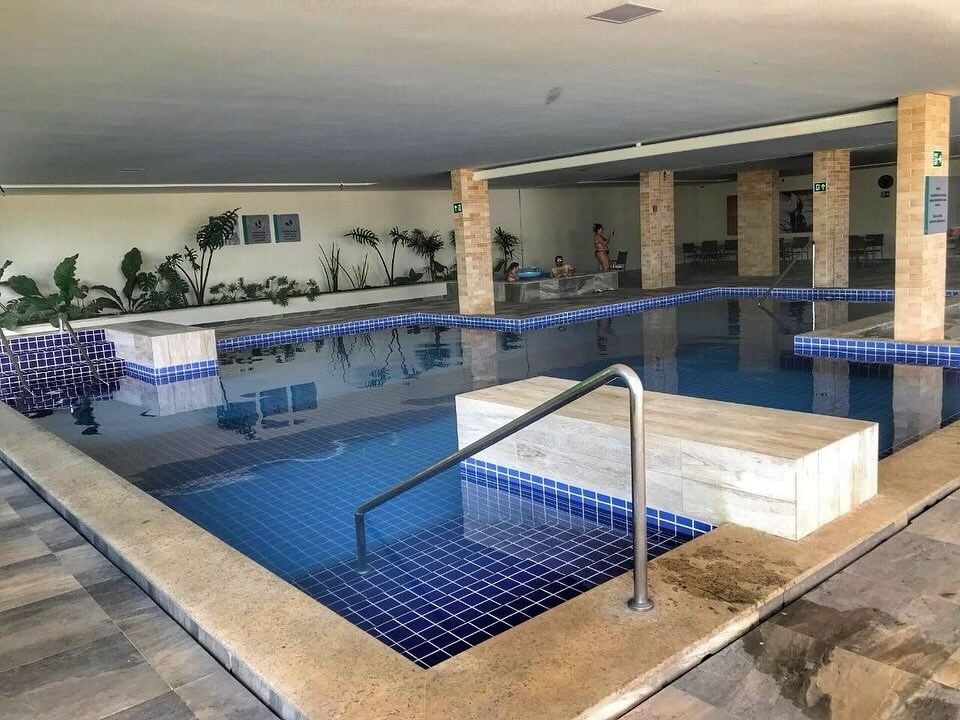 Наше преимущество — знаменитый Риу-Кенти с теплыми природными водами 37,5 ºC, ЭКСКЛЮЗИВНО для гостей, которые могут нырять и отдыхать в термальных водах. У нас есть взрослые и детские бассейны (очень теплые, конечно), бар, сауна и тренажерный зал. В квартире есть гостиница, предлагающая завтрак, обед и ужин (но оплачивается непосредственно на месте и не включена в суточную ставку). Расположен в 500 метрах от входа в Hot Park и Pousada do Rio Quente.