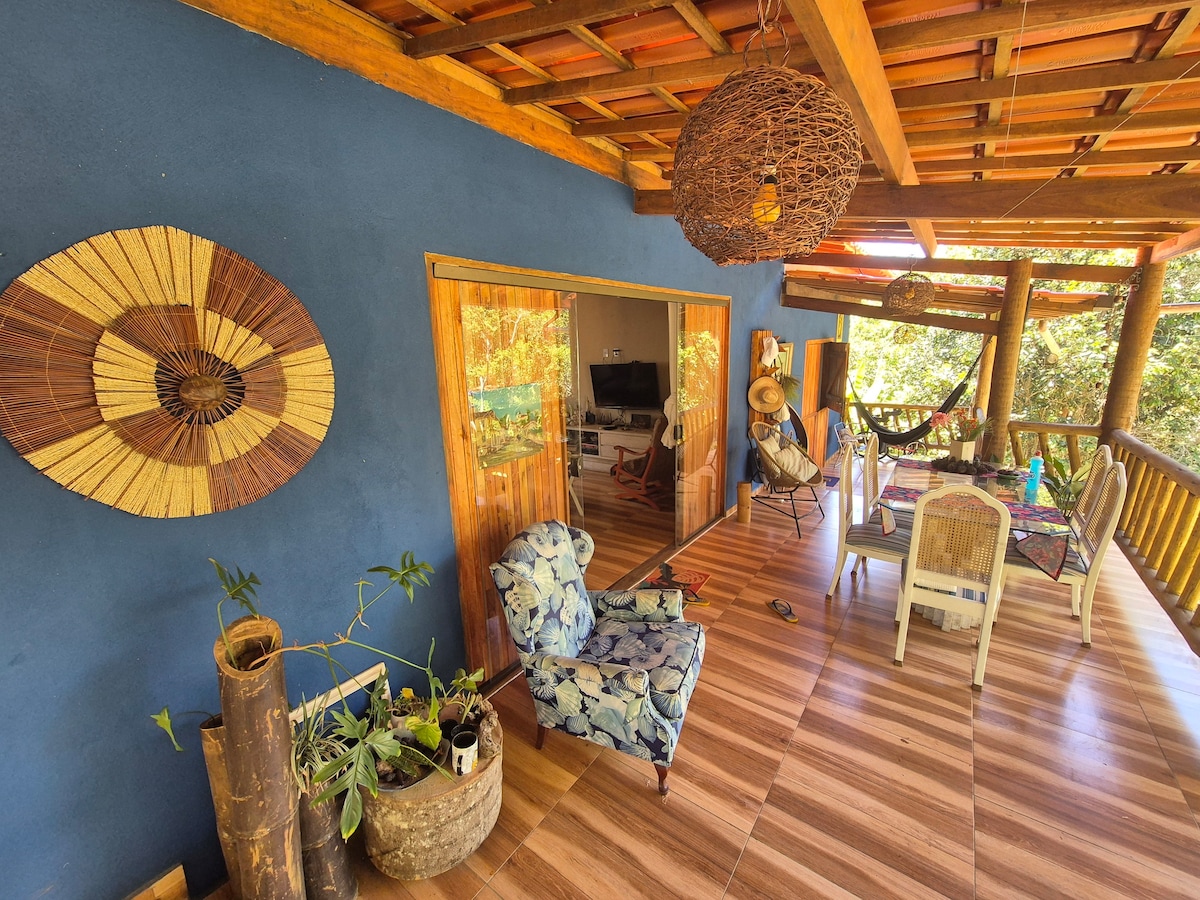 каюта очаровательная дерево с балконами и небольшая библиотека с книгами о природе и жизни. Широкий пейзаж до моря с вершины горы 100 метров до уровня моря. Мир и безопасность, 2 км от дружественной деревни Серра-Гранде. Убежище дикой природы: мелкие приматы, ленивцы, пекари и муравьи. Регион традиционных фермеров какао, маниоки, кокоса, птицеводства, серфинга, каноэ, велоспорта.