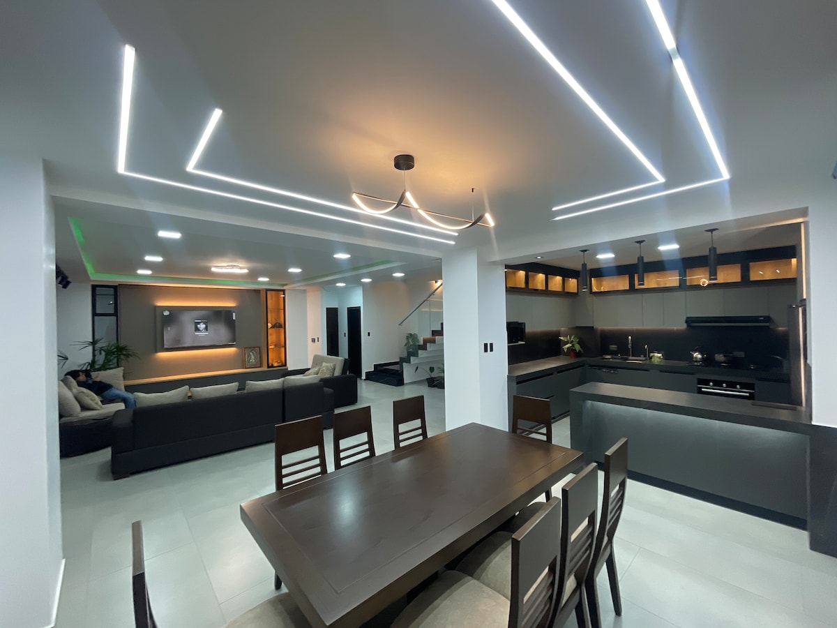 Hospédate en una Casa moderna, nueva elegante,es ideal para familias. La casa es privada cuenta con tres plantas, área de entretenimiento, jacuzzi para 8 personas,área de BBQ, tres habitaciones master con TV inteligentes con jacuzzi y duchas con agua caliente,closet,garaje para dos vehículos,sala con TV inteligente WIFI,comedor,cocina equipada,refrigerador,horno,microondas,cocina,licuadora,También aceptamos mascotas.Lugar tranquilo y acogedor para pasar momentos inolvidables y descansar.