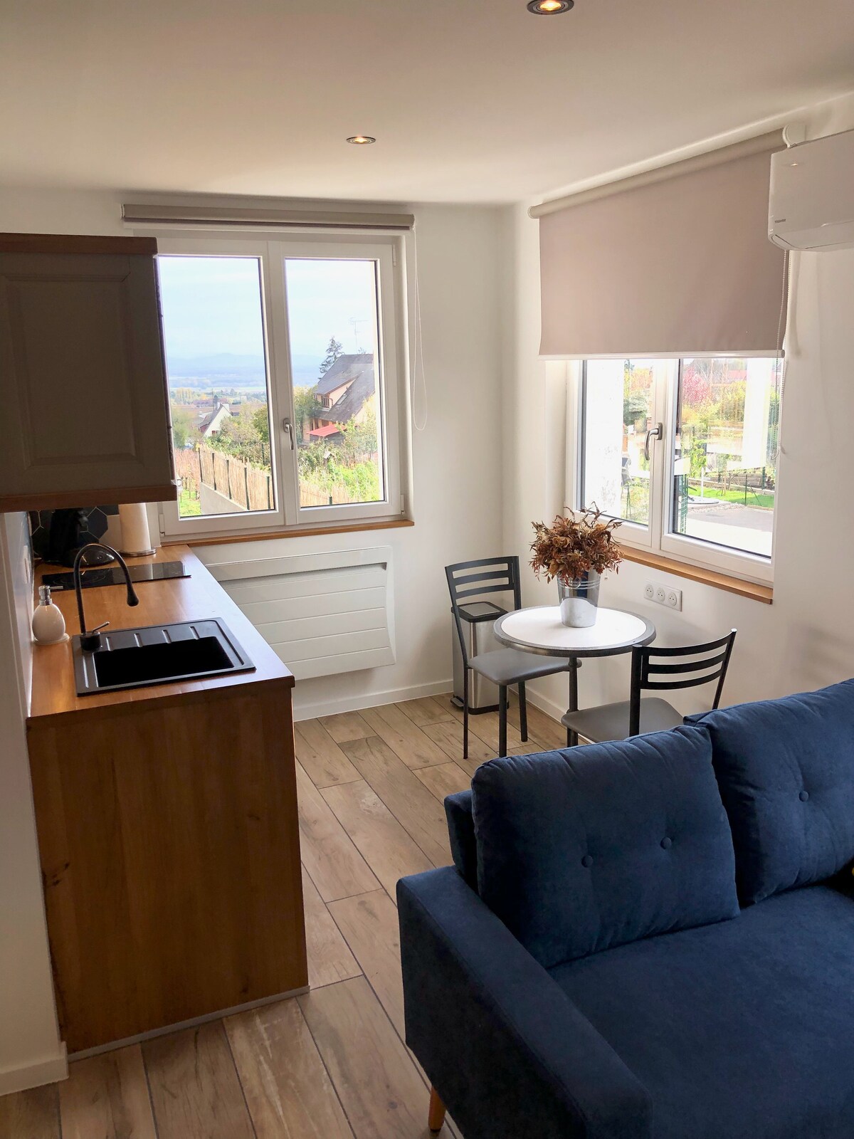 Очаровательная студия, которая встретит вас в исключительной обстановке, расположенной на высотах Туркхайма, предлагая весь комфорт и удовольствие, на которое надеялись его желания сбежать. Захватывающий панорамный вид на равнину до воздушных шаров Эльзаса благодаря этим 6-метровым эркерным окнам с видом на террасу площадью 12 кв. м с видом на юг. Откройте для себя это место, полное омолаживающих энергий, Trois-Epis. Отправление со многих пешеходных троп, 30 минут от горнолыжных склонов, 10 минут от винного маршрута, 15 минут от Кольмара.