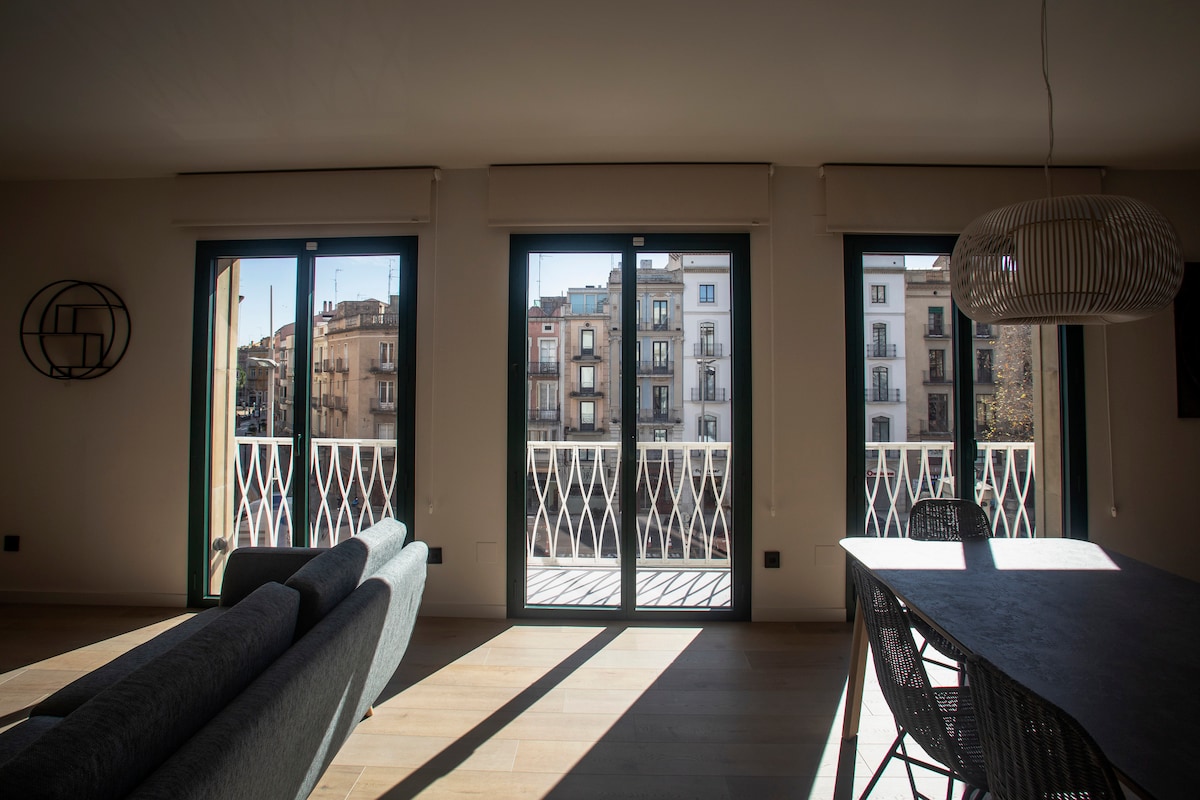 Недавно отремонтированная квартира расположена на 3-м этаже здания с лифтом. К услугам гостей двуспальная кровать, полностью оборудованная ванная комната и кухня, где большой диван - дополнительная кровать. Расположение непревзойденное, в 3 минутах от музея Дали и старого города Фигерас. Здесь есть все удобства и вид на общественный парк. Близко ко всем удобствам. Общественный парк находится в 20 метрах от апартаментов.