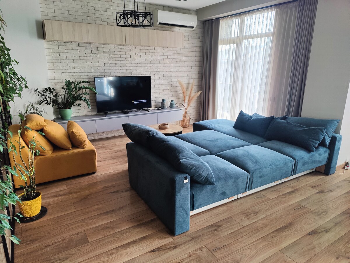 Отдохните и расслабьтесь в этом спокойном, стильном жилье. Наслаждайтесь небрежным пребыванием со всем необходимым для отдыха, с зоной отдыха на балконе, полностью оборудованной кухней (со стиральной машиной и посудомоечной машиной) и доступом к красивому двору, который доступен только жителям этого современного и безопасного жилого комплекса. Легко и быстро добираться до центра Тбилиси на автобусе (автобусная остановка находится в нескольких шагах) или на такси.