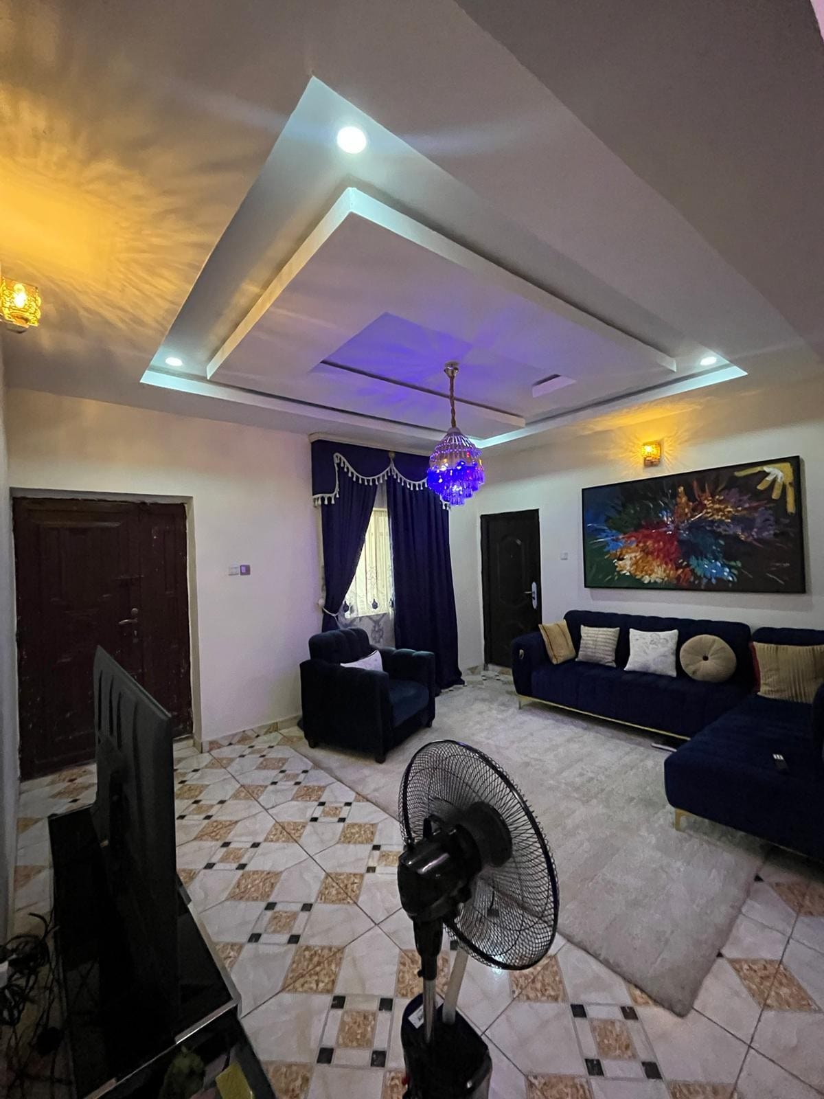 Отдохните всей семьей в этом спокойном месте, расположенном в спокойном районе за полицейским участком Нью-Оверри, рядом с домом собраний Imo. Полностью меблированная и обслуживаемая квартира с 2 спальнями на короткий срок O8O666O9OI9 Особенности! *Просторные комнаты с собственной ванной *Частный балкон *Гостевой туалет *Гостиная *Обеденная зона; *Оборудованная кухня с магазином *Спокойная обстановка *Полностью меблирована *Смарт-телевизор с кондиционером * Бесплатный Wi-Fi *Частная стиральная машина *247 электричество, инвертор.