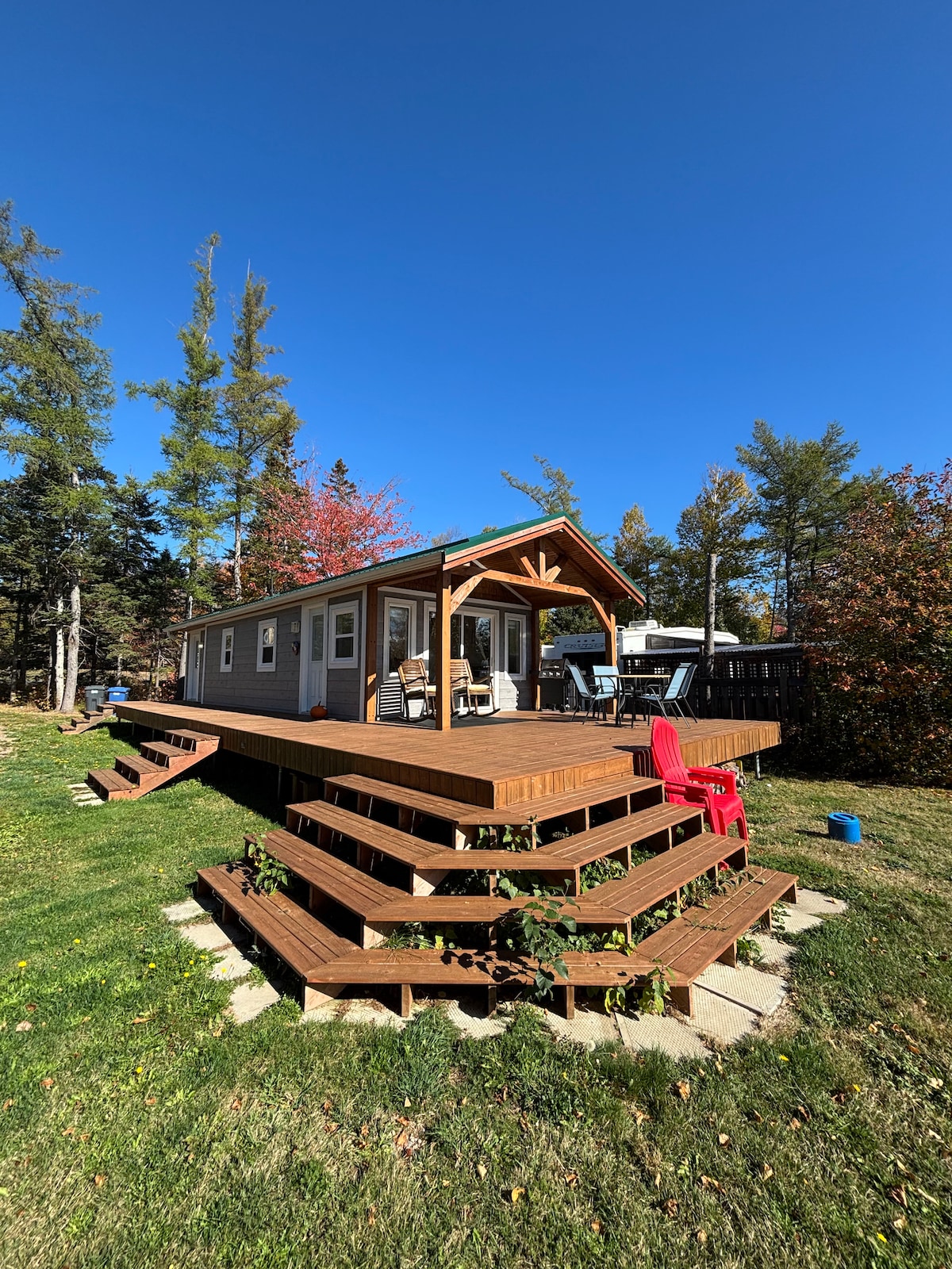 Февраль, март, апрель: минимум 60 дней. Июнь и сентябрь: мин. 3 дня Июль и август: мин. 7 дней 150 метров от залива Караке, идеальное место для занятий водными видами спорта, такими как каякинг, гребля на каноэ и т. д. Для зрелых и ответственных людей! Спа, стиральная машина, сушилка, посудомоечная машина, кондиционер, кабельное телевидение, интернет, Netflix, звуковая система, барбекю, наружный камин, полотенца, постельное белье, посуда и котлы. 1 км от велосипедной дорожки, 8 км от исторической деревни Акадиен, 19 км от поля для гольфа.