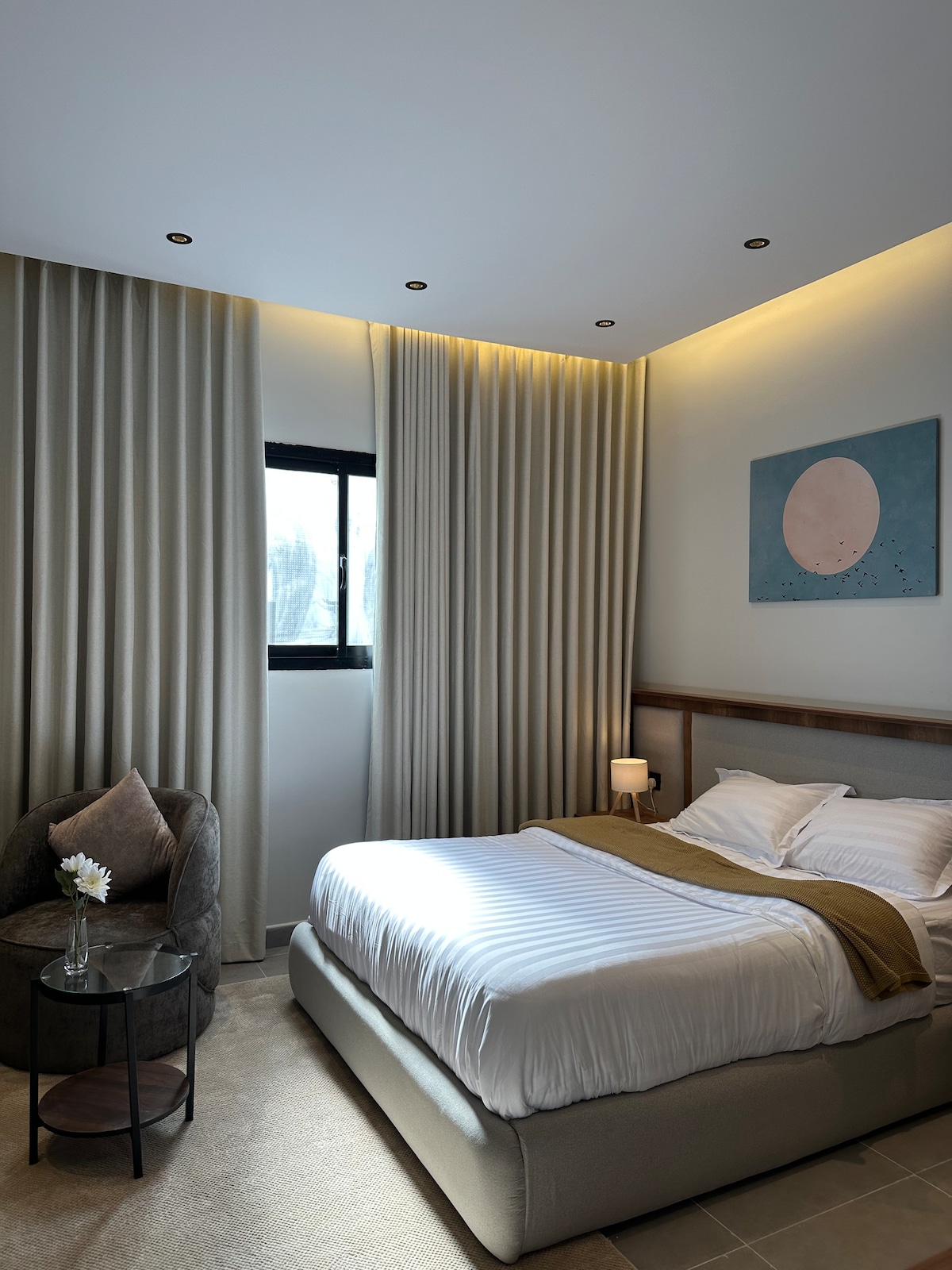 مرحبًا بك في شقتك الأنيقة المستوحاة من طوكيو، والتي تقع في قلب الرياض، على بعد ٣٠٠ متر فقط سيرًا على الأقدام من محطة مترو الرياض. يجسد هذا الاستوديو المذهل ذو المساحة المفتوحة جوهر الجماليات اليابانية الحديثة، ويتميز بخطوط أنيقة ومفروشات بسيطة وأجواء هادئة. تقع الشقة في مبنى بتصميم داخلي مستوحى من معرض فني.