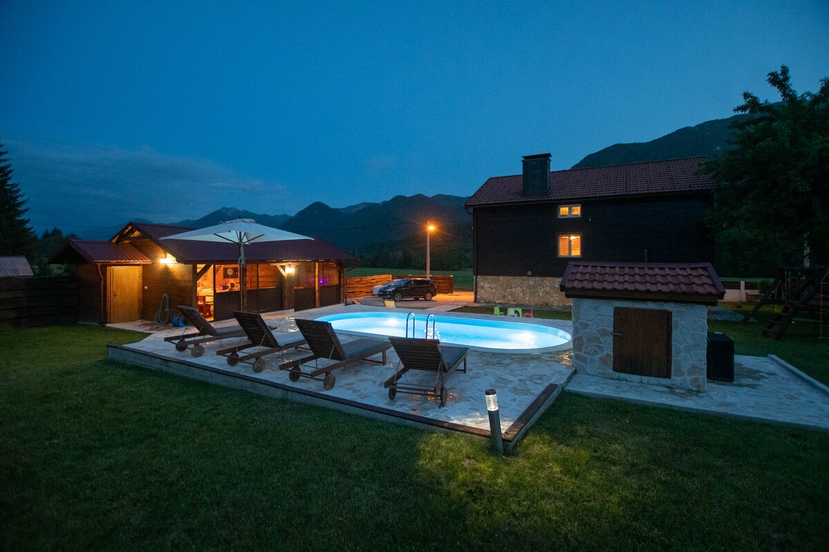В доме для отпуска есть телевизор с плоским экраном и гостиный уголок с диваном. Полностью оборудованная кухня оснащена микроволновой печью, духовкой и холодильником, а также обеденной зоной. Ванные комнаты оборудованы душем, феном и бесплатными туалетно-косметическими принадлежностями, а также стиральной машиной. В апартаментах Nina Holiday Home к вашим услугам сад с принадлежностями для барбекю, собственный бассейн, мебель на открытом воздухе и обеденная зона на открытом воздухе. У бассейна есть шезлонги и зонтики. Гости могут насладиться различными мероприятиями, связанными с природой, такими как пешие и велосипедные прогулки. К услугам гостей бесплатная парковка. Holliday Home Nina in Rizvanuša near Brušane. Типический горный дом с четырьмя спальнями. В центре красивой природы рядом с природным парком на севере Велебит. Holiday Home Nina расположен в Брюшане недалеко от Госпича и предлагает вид на горы из всех номеров. Из этого номера с собственной кухней открывается вид на горы и сад. В доме для отпуска есть телевизор с плоским экраном и гостиный уголок с диваном. Полностью оборудованная кухня оснащена микроволновой печью, духовкой и холодильником, а также обеденной зоной. Ванные комнаты оборудованы душем, феном и бесплатными туалетно-косметическими принадлежностями, а также стиральной машиной. В апартаментах Nina Holiday Home к вашим услугам сад с принадлежностями для барбекю, собственный бассейн, мебель на открытом воздухе и обеденная зона на открытом воздухе. У бассейна есть шезлонги и зонтики. Гости также могут насладиться различными мероприятиями, связанными с природой, такими как пешие и велосипедные прогулки. К услугам гостей бесплатная парковка. Дополнительные предложения: парковка для трейлера/автофургона/лодки, гладильная доска, духовка, микроволновая печь, плита, посудомоечная машина, холодильник, морозильная камера, газ, тостер, чайник, кухонная утварь, гриль для барбекю, дровяная печь, душ, отдельный туалет, приветствуются дети, вид на горы, ванная комната, толет, кровать, спальня, гостиная, обеденная зона, гостиная зона, электричество, вода, дрова для камина.