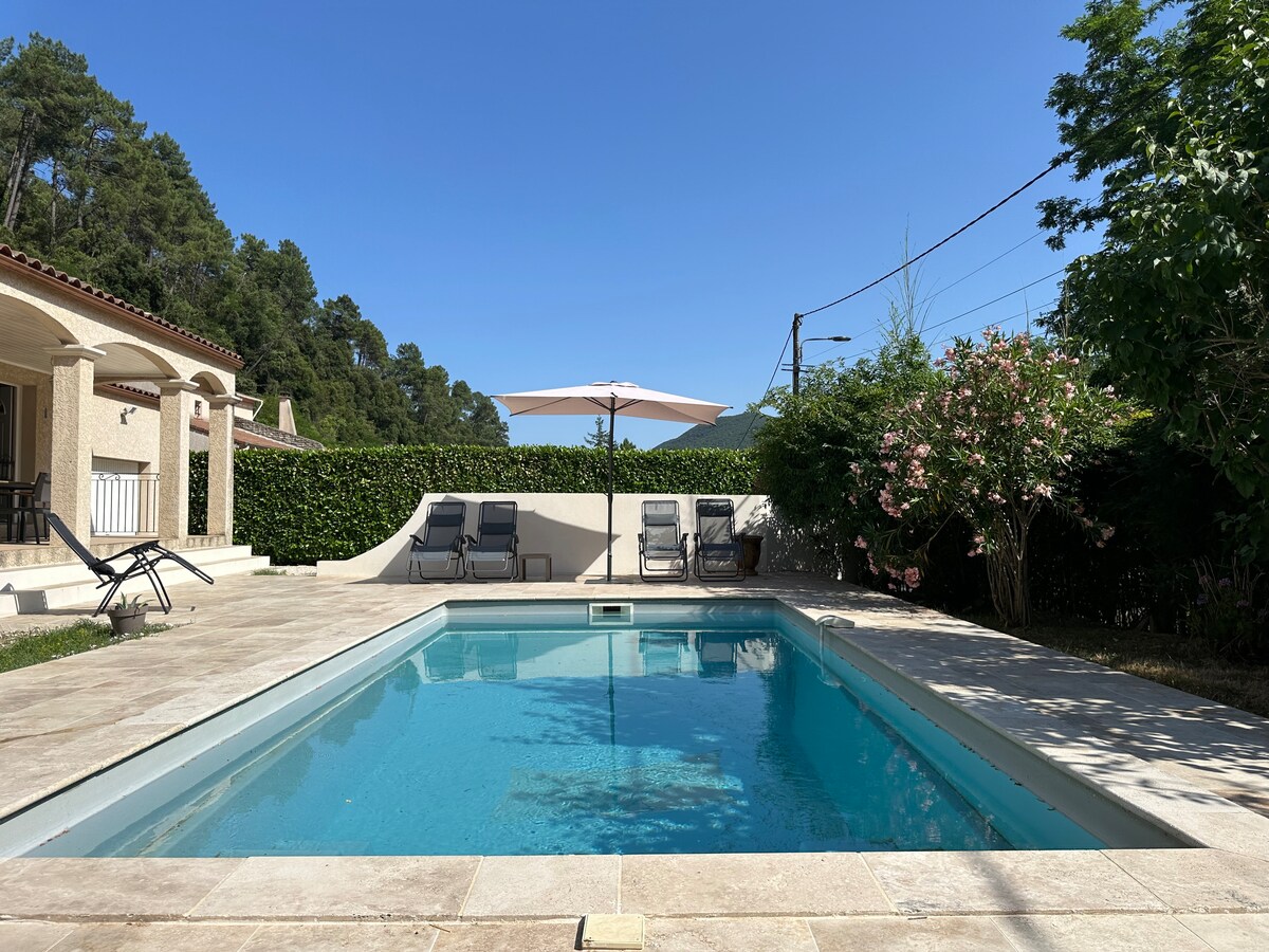 Вилла с частным бассейном и площадкой для игры в петанк.