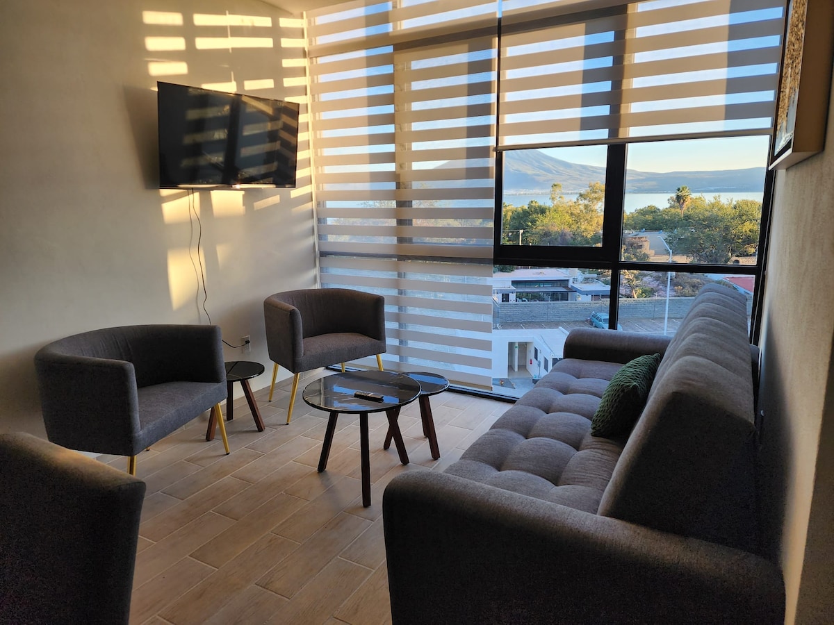 Расслабьтесь в этом тихом и стильном пространстве. Отдохните и расслабьтесь на несколько дней, очень близко к Гвадалахаре. Всего в 10 минутах от горячих источников и в 20 минутах от Ахиджика. В кондоминиуме есть бассейн, терраса, парковка, ванные комнаты и душ, а также несколько шагов от морепродуктов. В квартире 2 комнаты с кроватями размера Queen size, 2 ванные комнаты с туалетом, 1 диван-кровать, 1 диван-кровать, Wi-Fi и кабельное телевидение, консоль Xbox, бытовая техника и все необходимое для проживания.